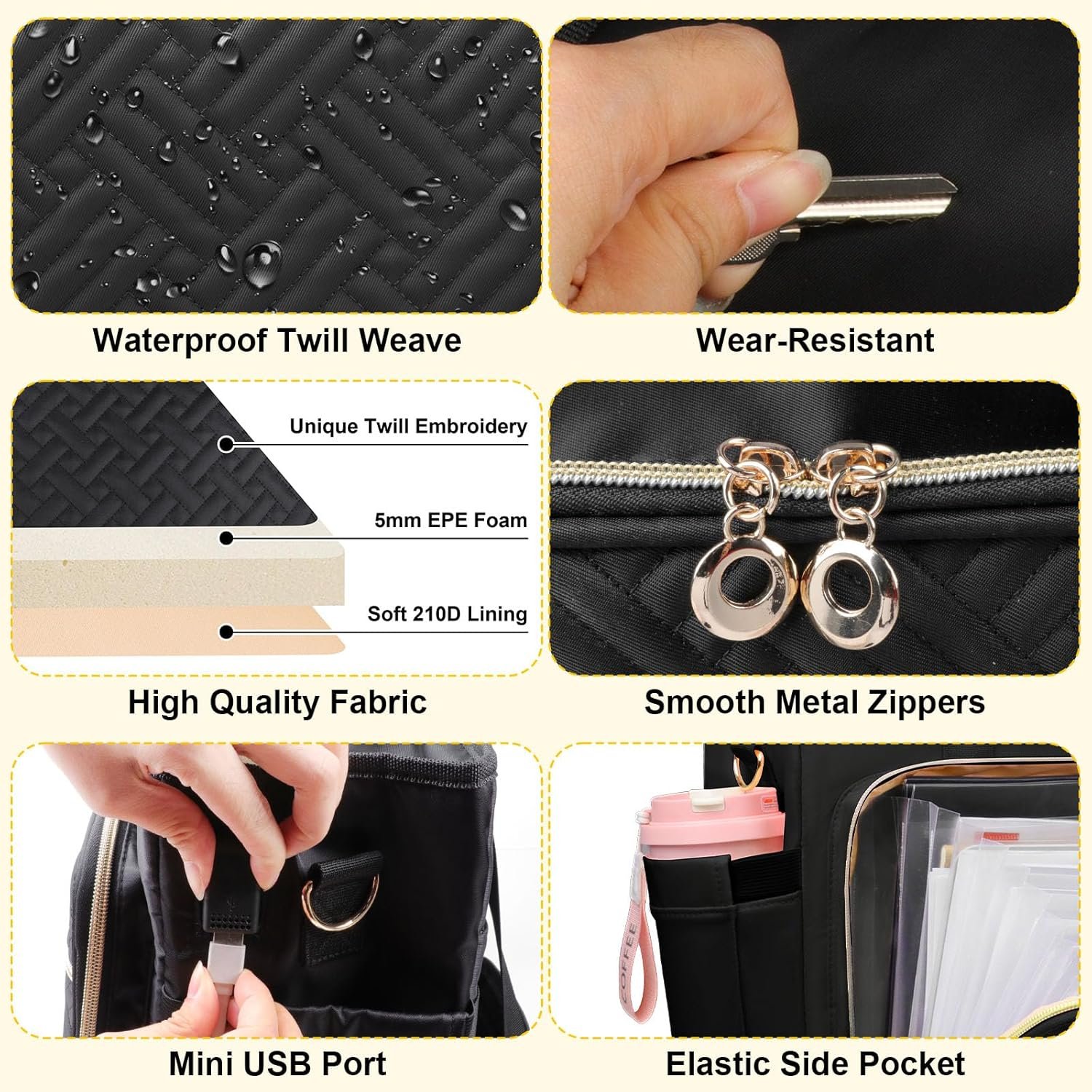 【Multiple Pockets& USB Port Design】 8 storage pockets designed inside makes it easy to sort your teacher essentials, and the side elastic pockets protect your water bottle and umbrella. With a USB charging port, this teacher tote bag for women provides easy access to charge your phone on the go.