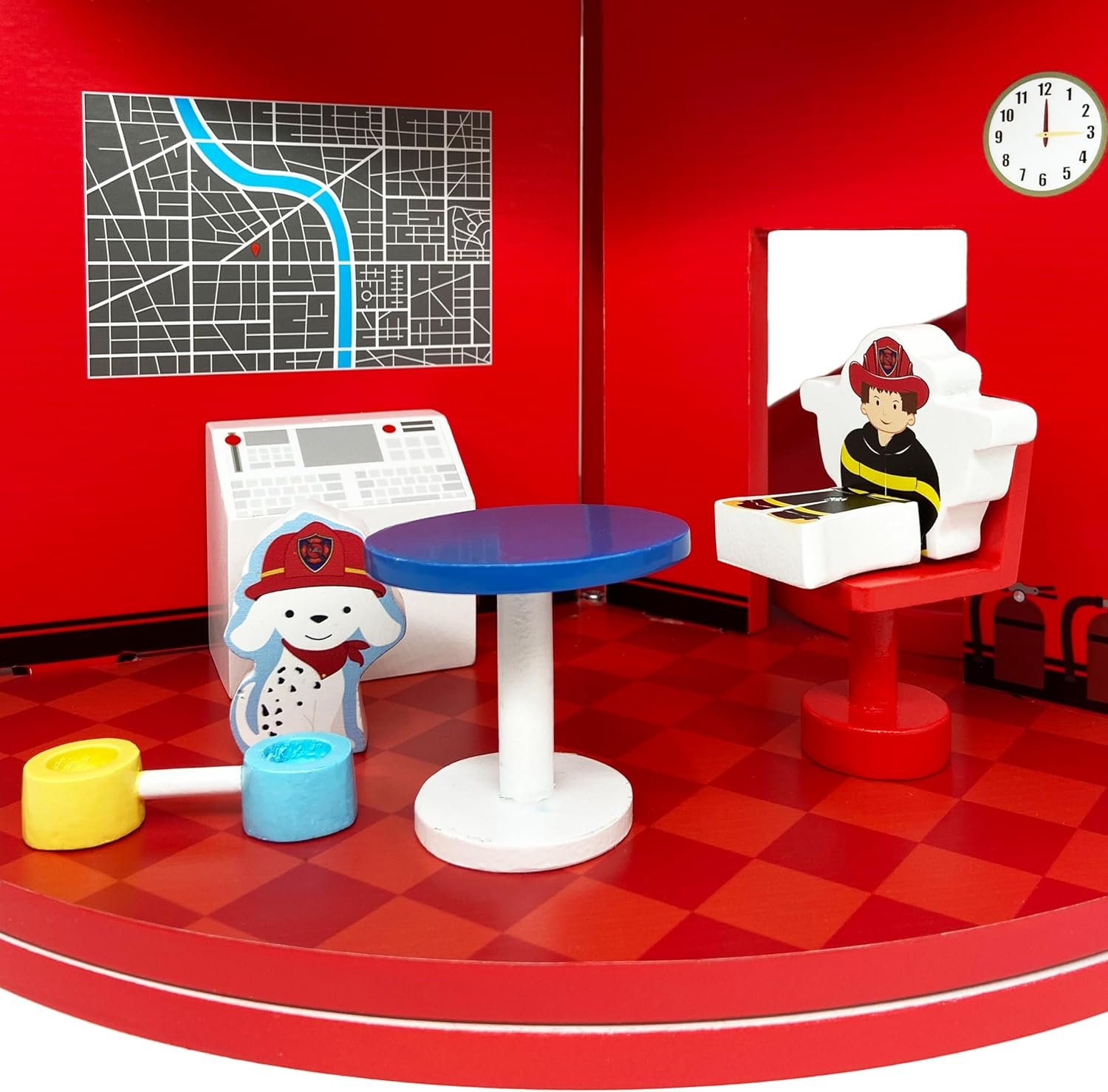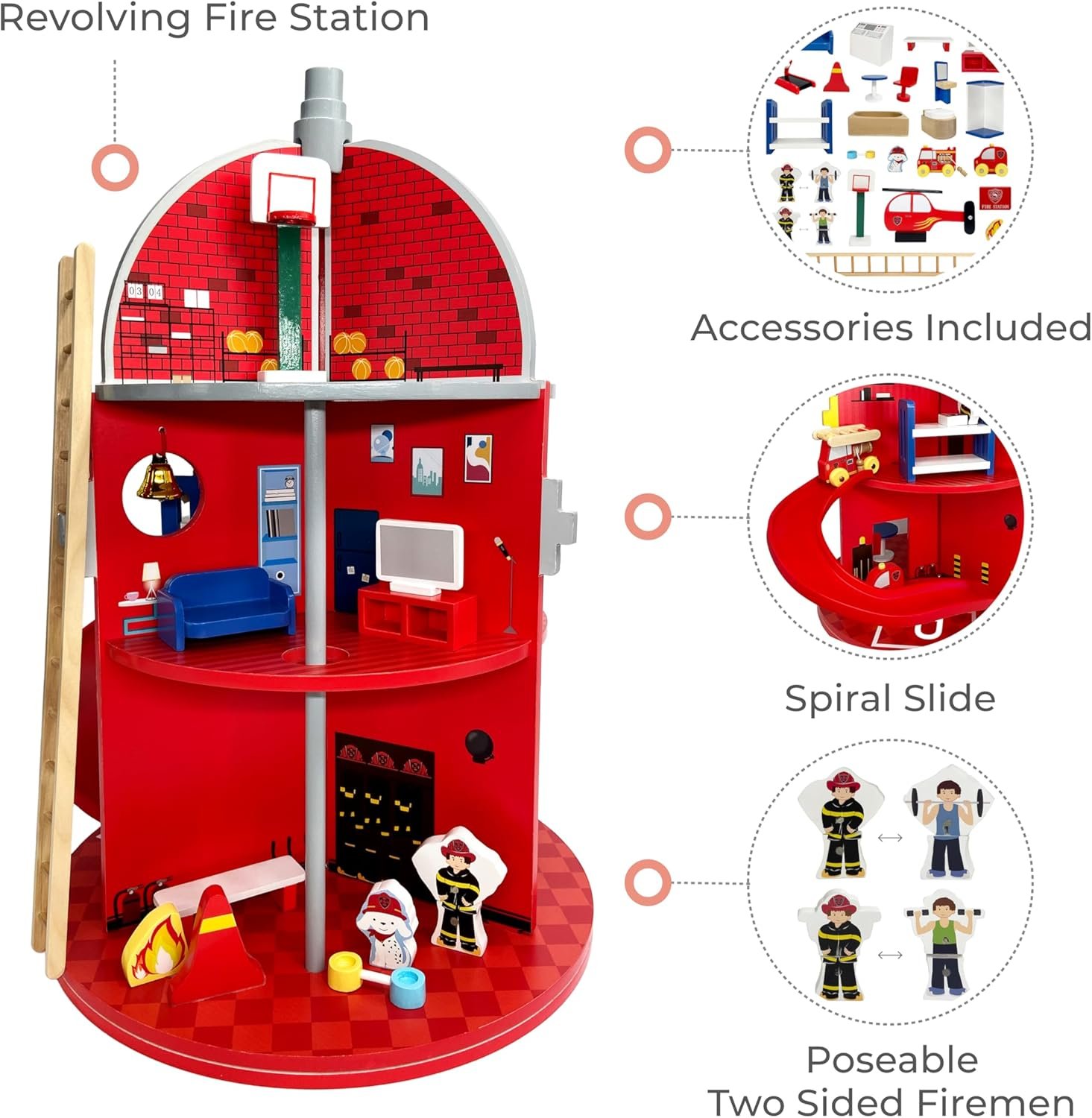 This 3-story, hydrant-shaped fire station playset with a rotating base boasts a fireman’s pole, ladder, and slide for speedy rescues. Includes 25 firefighter-themed pieces include a gym, bathroom, bunkbed, comfy lounge furniture, plus a helicopter, fire truck, and car for on-the-go calls. Double-sided firefighter figures let your child switch between firefighting duty and relaxing downtime at the station with the stationhouse’s pet dalmatian. Sturdy pieces detailed with colorful illustrations. Teamson Kids gives flight to fun, discovery, and learning through beautifully crafted, safe, and trend-right furniture and toys for kids with a spirit of curiosity and adventure.