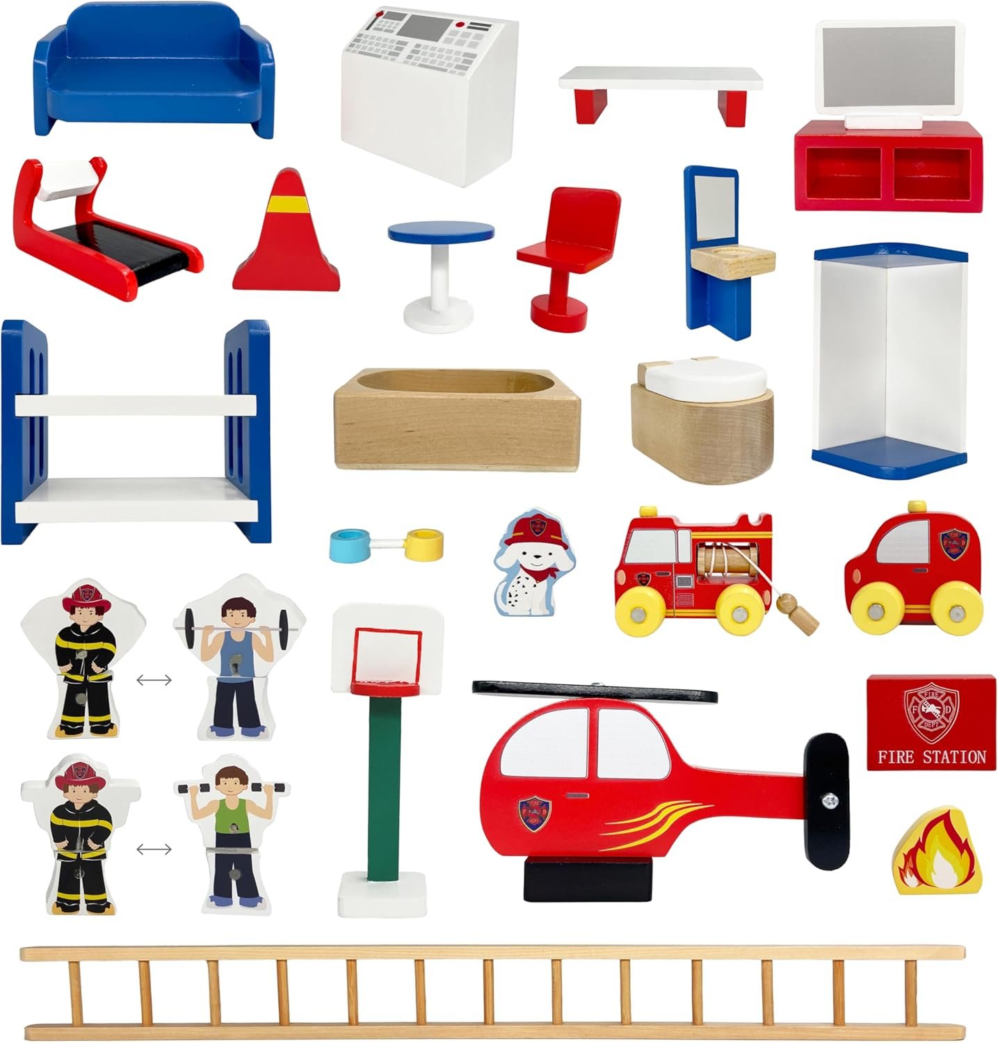 With over 25 wooden figurines and furnishings with detailed, colorful illustrations