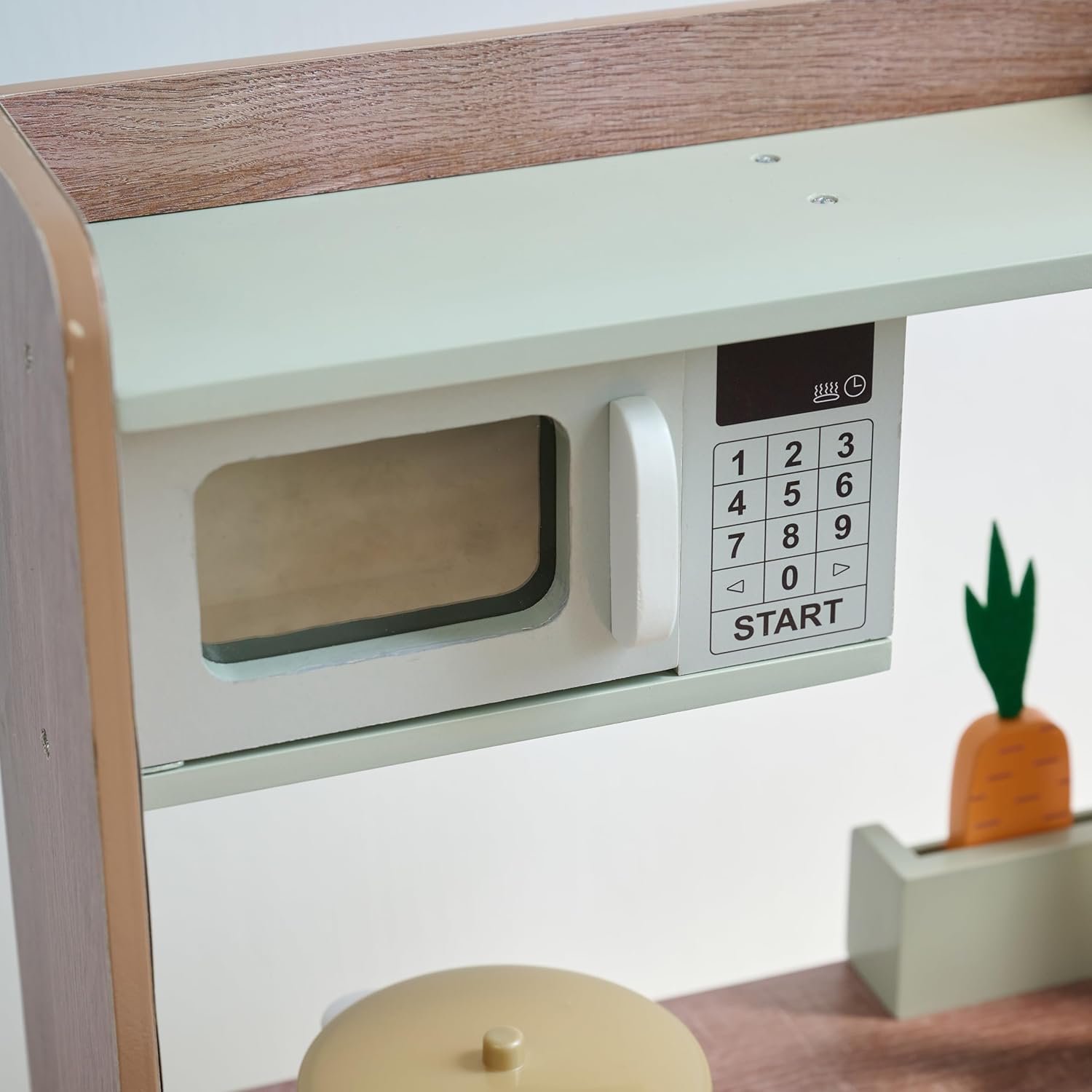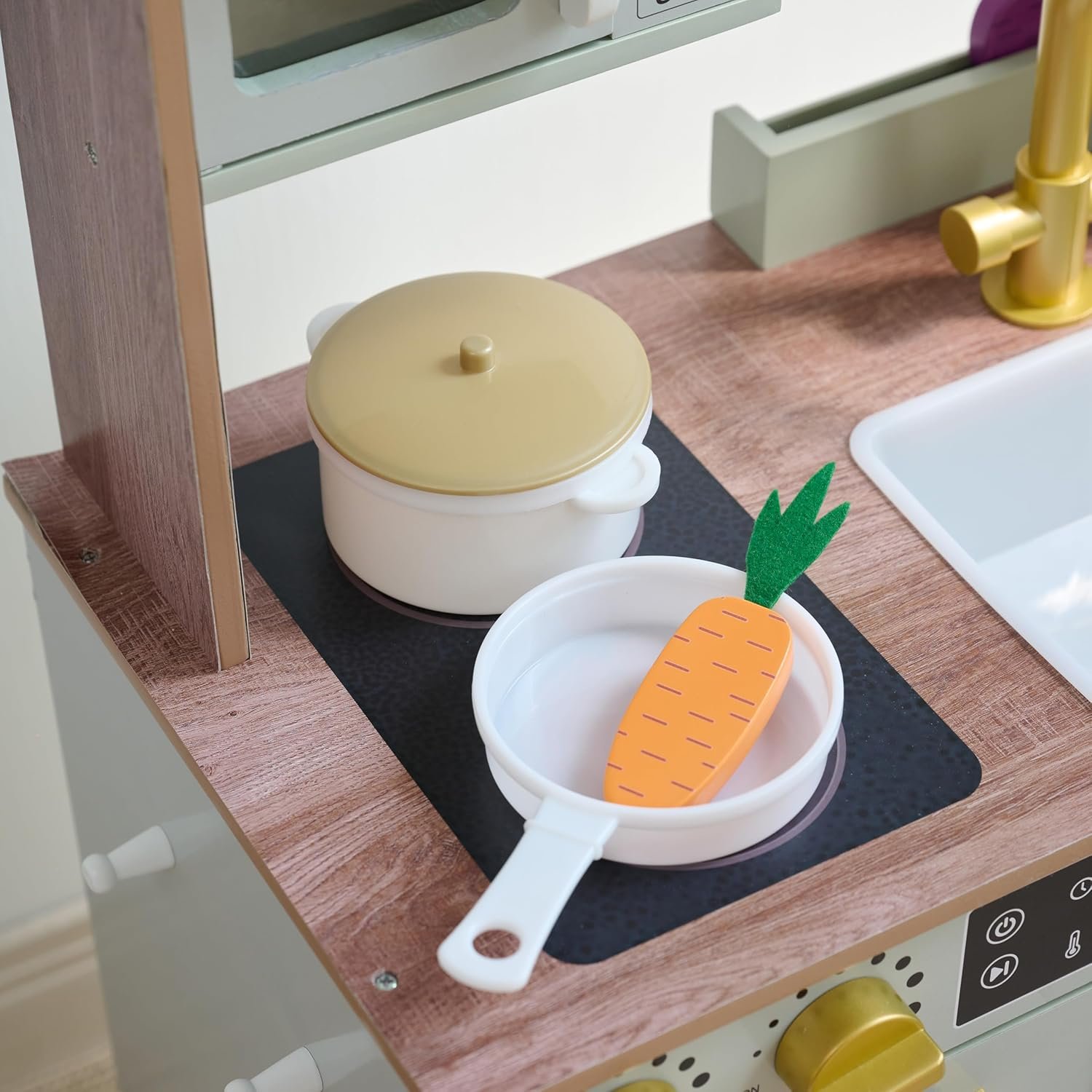 DURABLE, EDUCATIONAL & ENGAGING Built from sturdy wood to withstand years of play, this kitchen supports motor skill development, creativity, and early responsibility.
