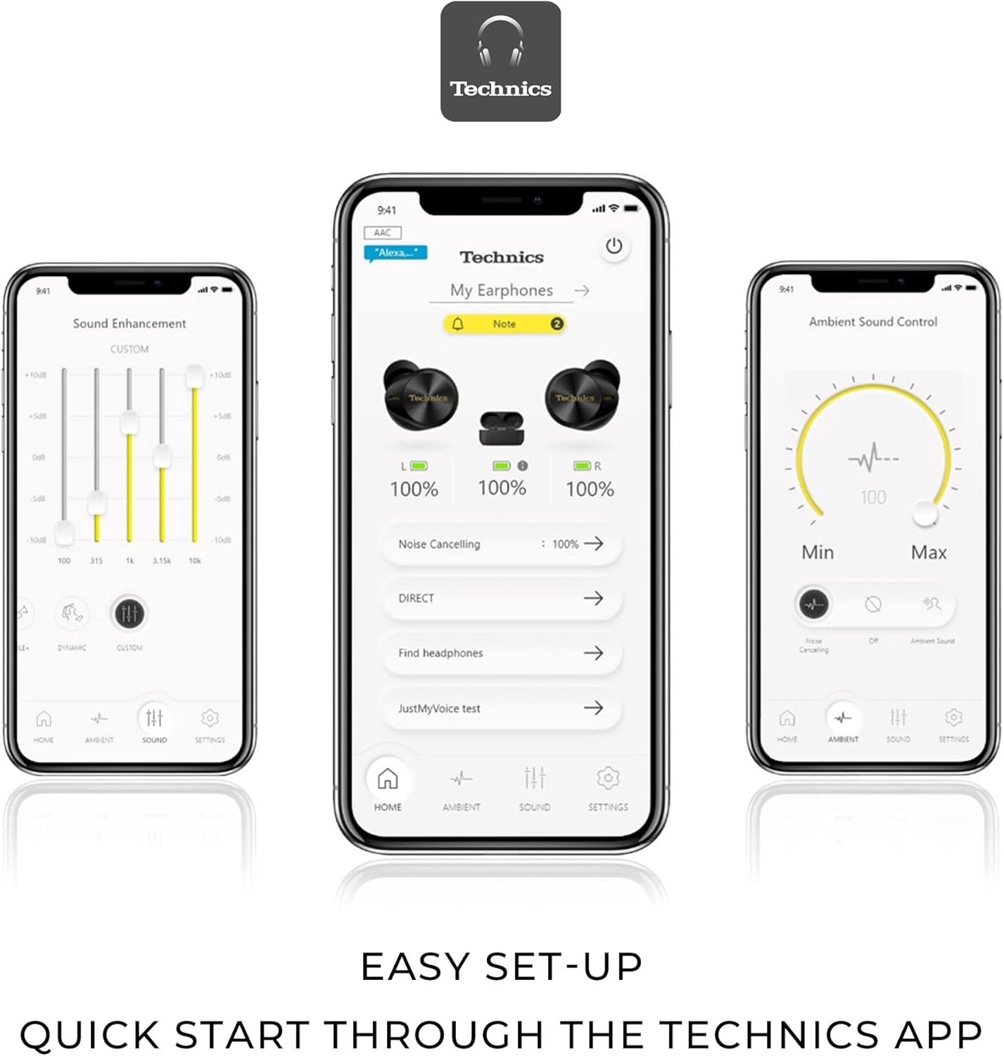 Stay on top of your game with impressively powerful, noise cancelling AZ80 wireless ear buds with reference-quality sound. Discover legendary recorded music as you’ve never heard it before with Technics’ highest-resolution audio, giving you the feel of the arena, an exclusive club, or in-studio magic; hear all the incredible details, from the warm timbre of a singer’s voice to the thrill of the beat drop. Like you, these bluetooth earphones work as hard as they play, with state-of-the-art noise cancellation so you can focus on your critical business. A must-have for high-priority business calls, Technics AZ80 wireless noise cancelling earbuds ensure you voice comes through seamlessly on every call, with enhanced JustMyVoice technology using 8 MEMS microphones and an advanced noise-reducing algorithm to minimize outside interference. Now you can connect to more than two devices at the same time – Technics’ Multipoint technology allows you to connect to three Bluetooth devices simultaneously, keeping you connected to your computer, tablet and phone at once and giving you the ability to multitask with flow, whether you’re on a plane, on the golf green, or using them as workout earbuds. Charge wirelessly (Qi compatible) to keep your workspace and bedside table neat; supports wireless hi-res audio using state-of-the-art Bluetooth with LDAC compatibility. Noise cancellation, EQ, and more are customizable through the Technics audio app so you can always have sound just as you want it.