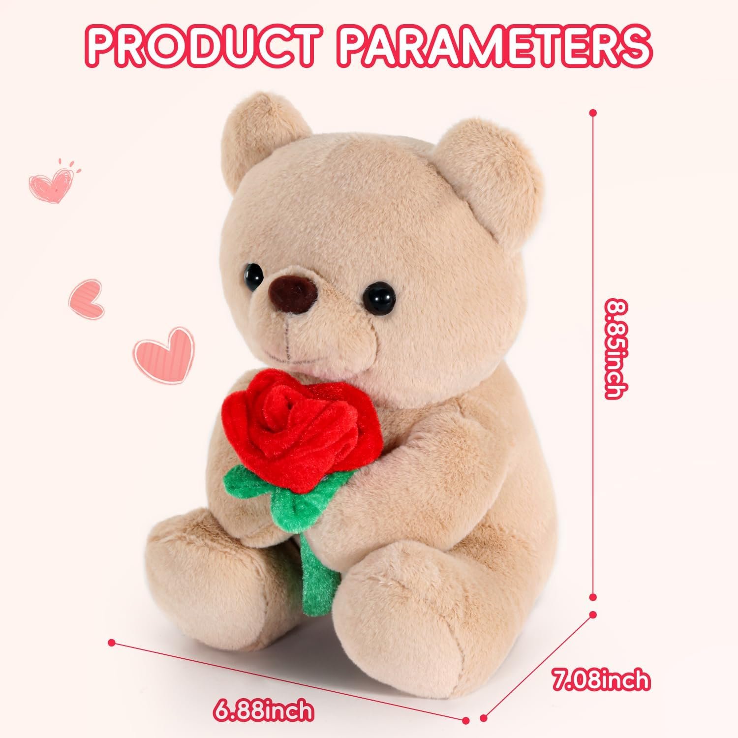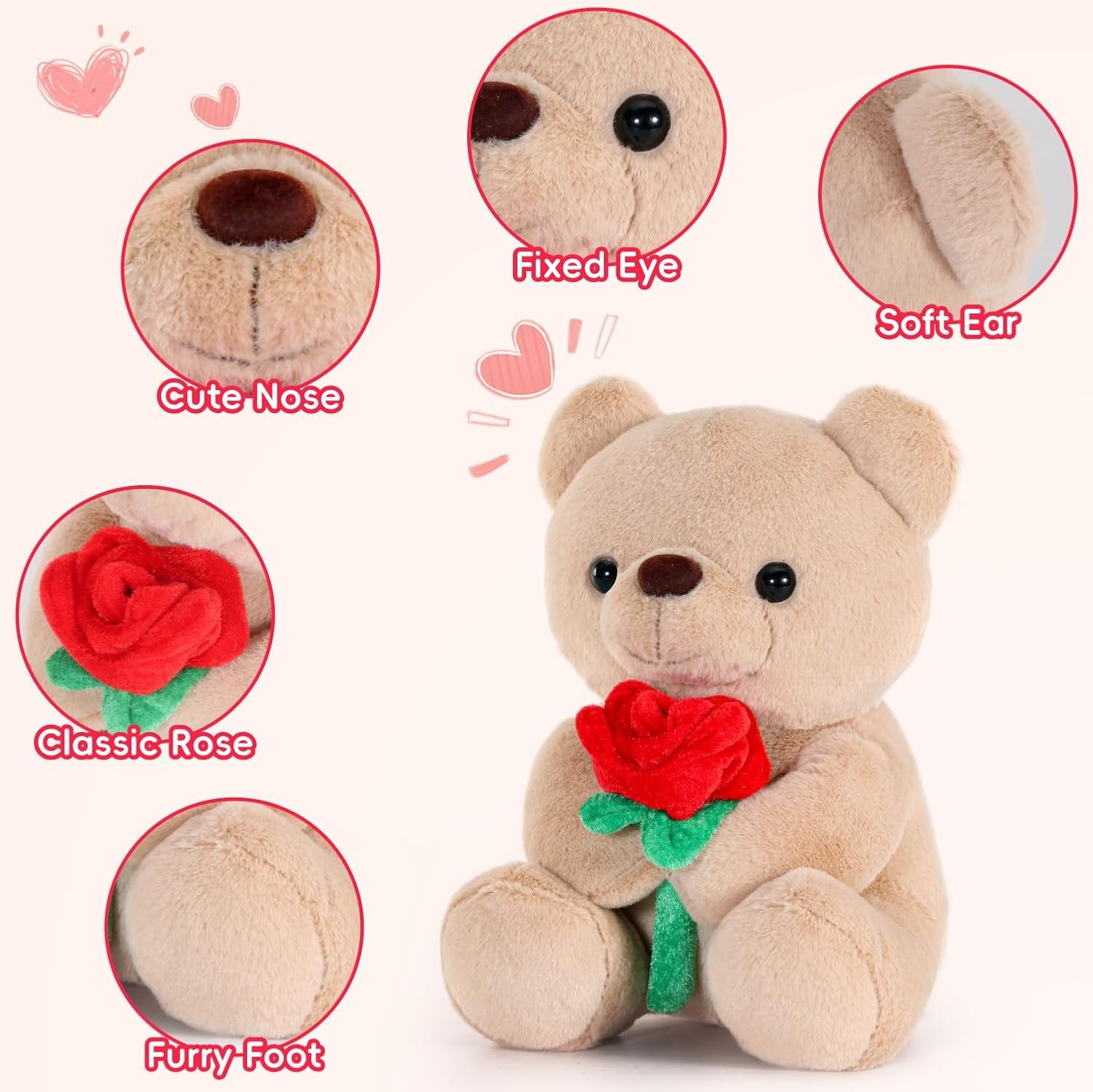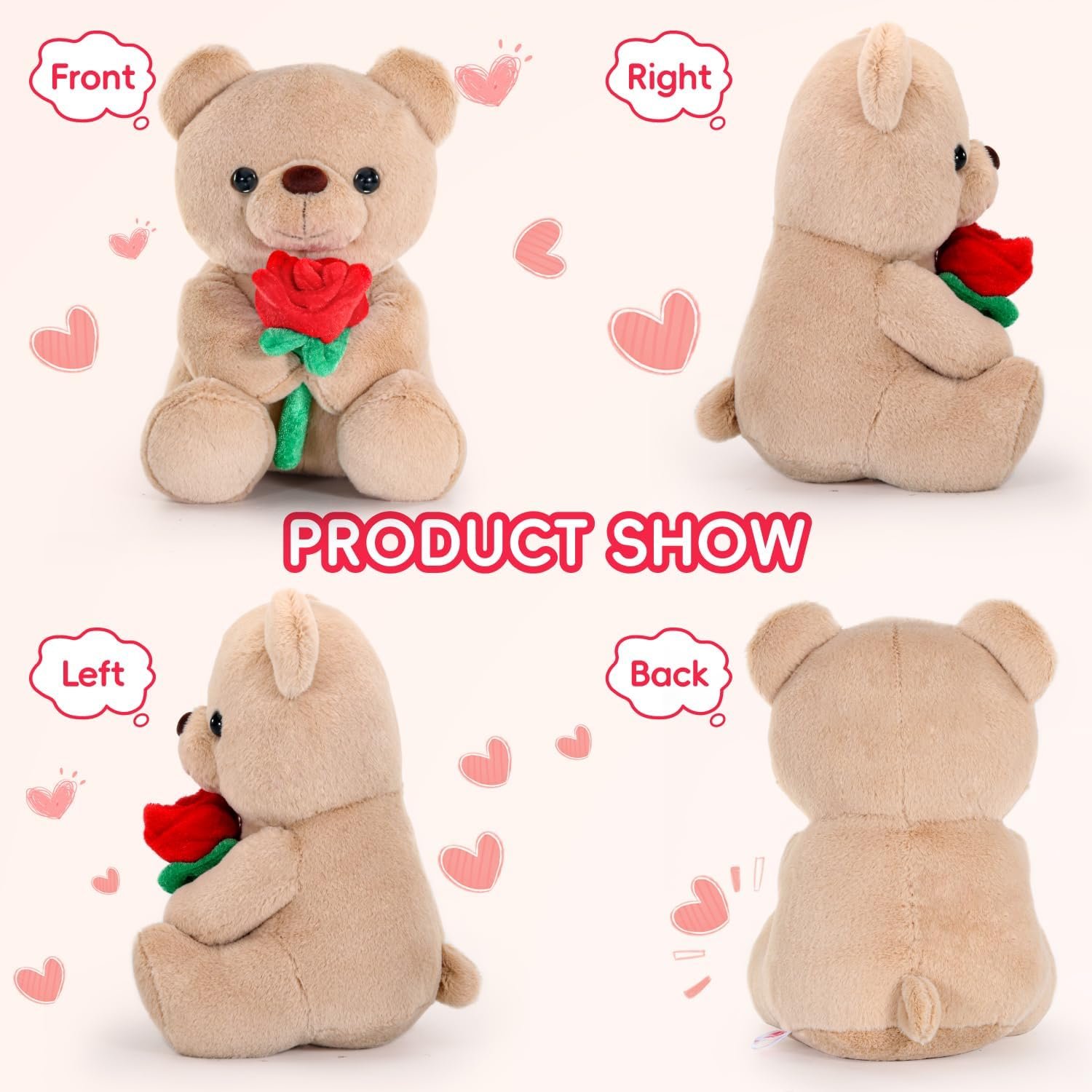 VALENTINES DAY GIFTS FOR KIDS: This teddy bear is a brown color with a red rose, and its shape is playful and cute; You can take it anywhere easily, and it can accompany you and bring you happiness