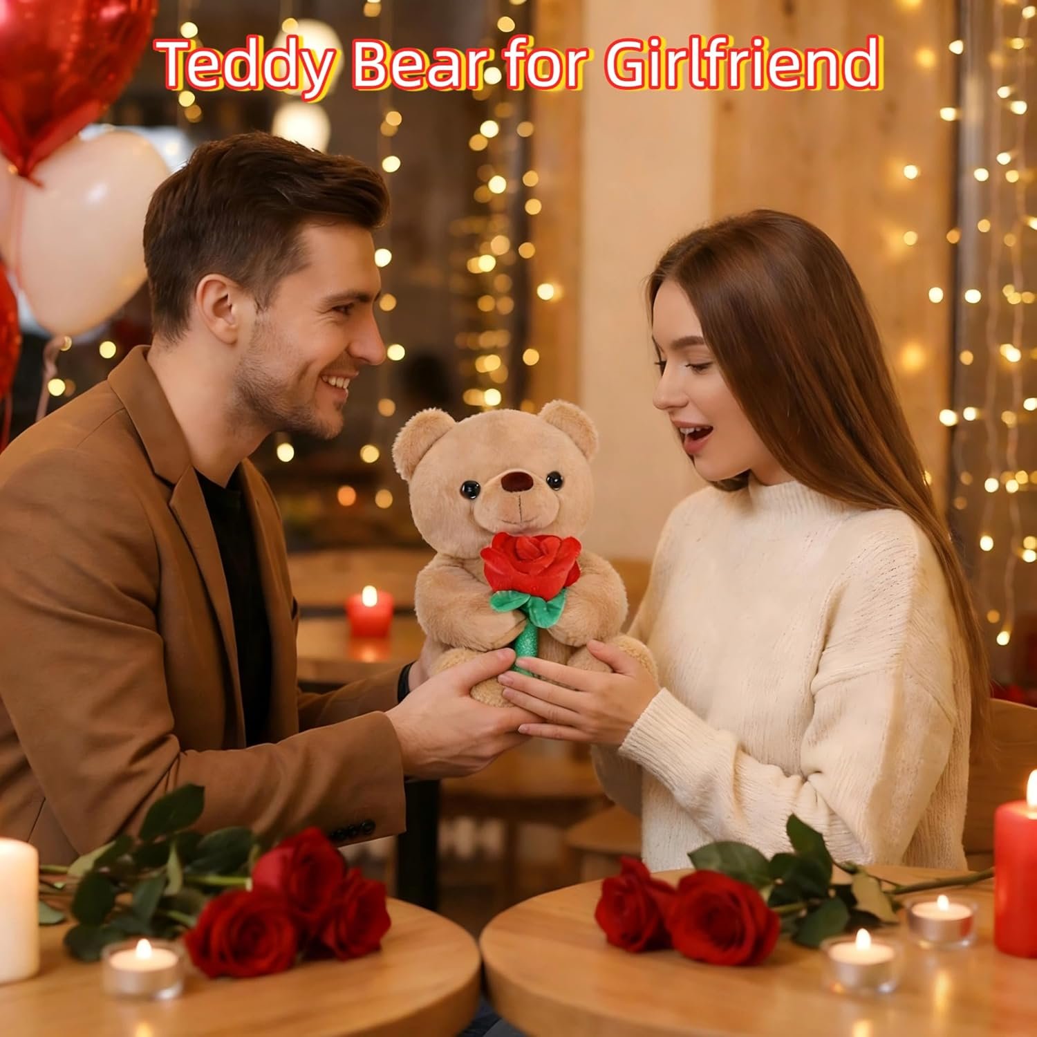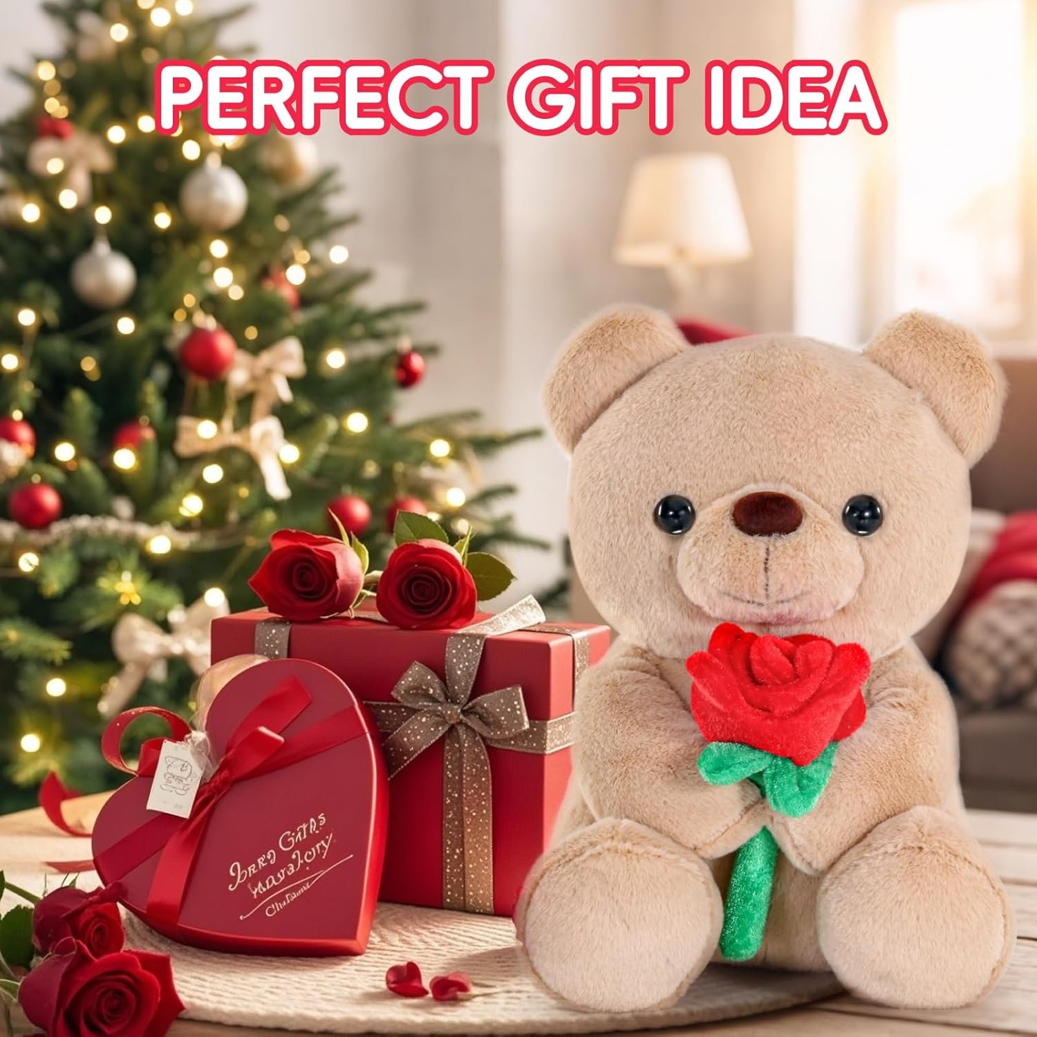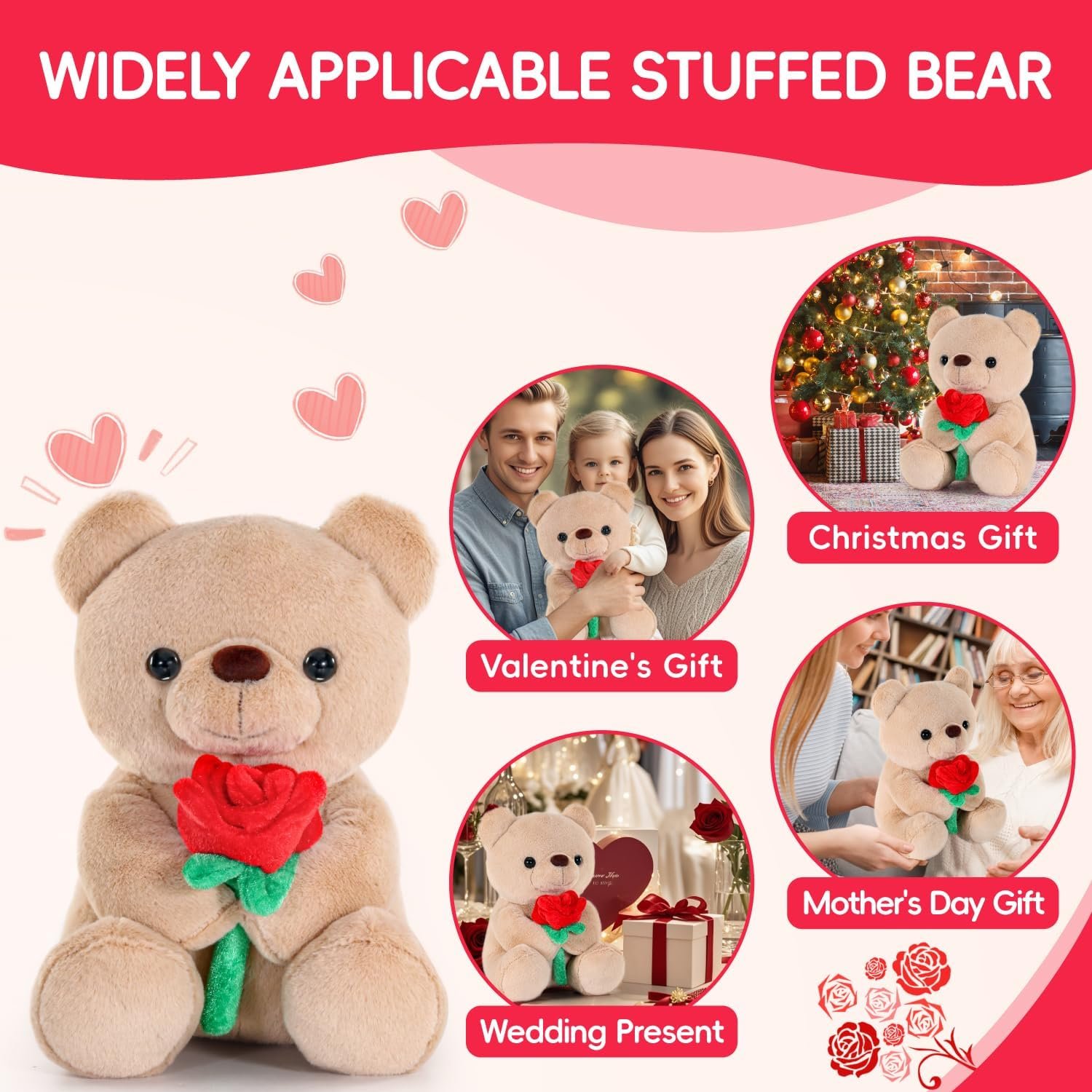 VALENTINES DAY GIFTS FOR KIDS: This teddy bear is a brown color with a red rose, and its shape is playful and cute; You can take it anywhere easily, and it can accompany you and bring you happiness