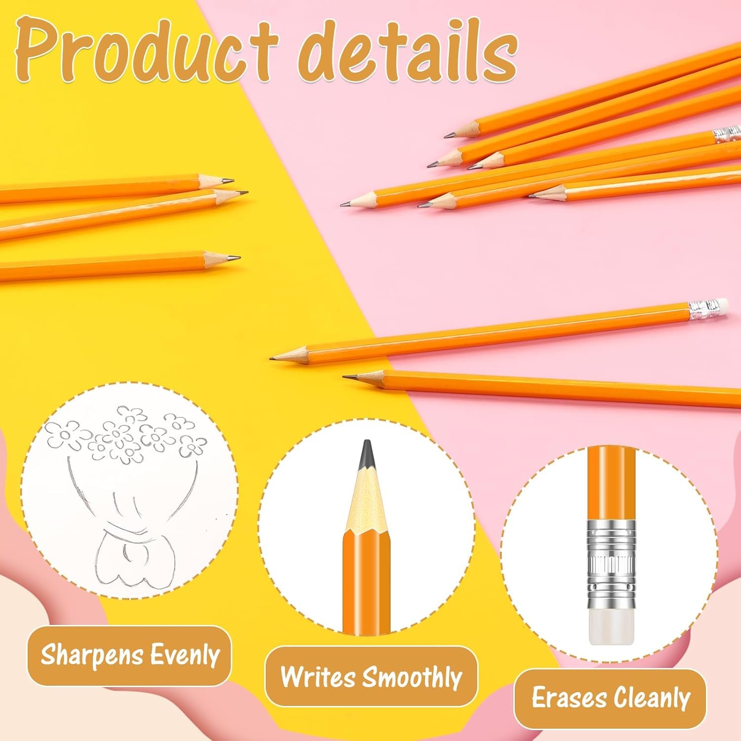 Suitable Size: the pencil size is 7.28 x 0.28 inches, comfortable to hold; The pencil sharpener size is 1.57 x 1.5 x 0.79 inches, small and portable; The ruler length is 12 inches, and the eraser size is 2.05 x 0.83 x 0.39 inches, suitable for daily use