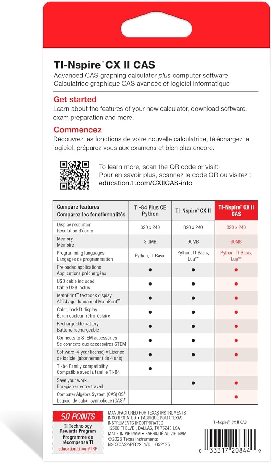 Texas Instruments TI-Nspire CX II CAS Color Graphing Calculator Faster performance, added interactive visuals and easier-to-read graphics expand the TI-Nspire CX graphing calculators’. Animated path plot: Visualize function, parametric and polar graphs as they are drawn in real time. Dynamic coefficient values: Explore direct connections between dynamic coefficients in equations and graphs. Points by coordinates: Create dynamic points defined by coordinates, sliders or expressions quickly.