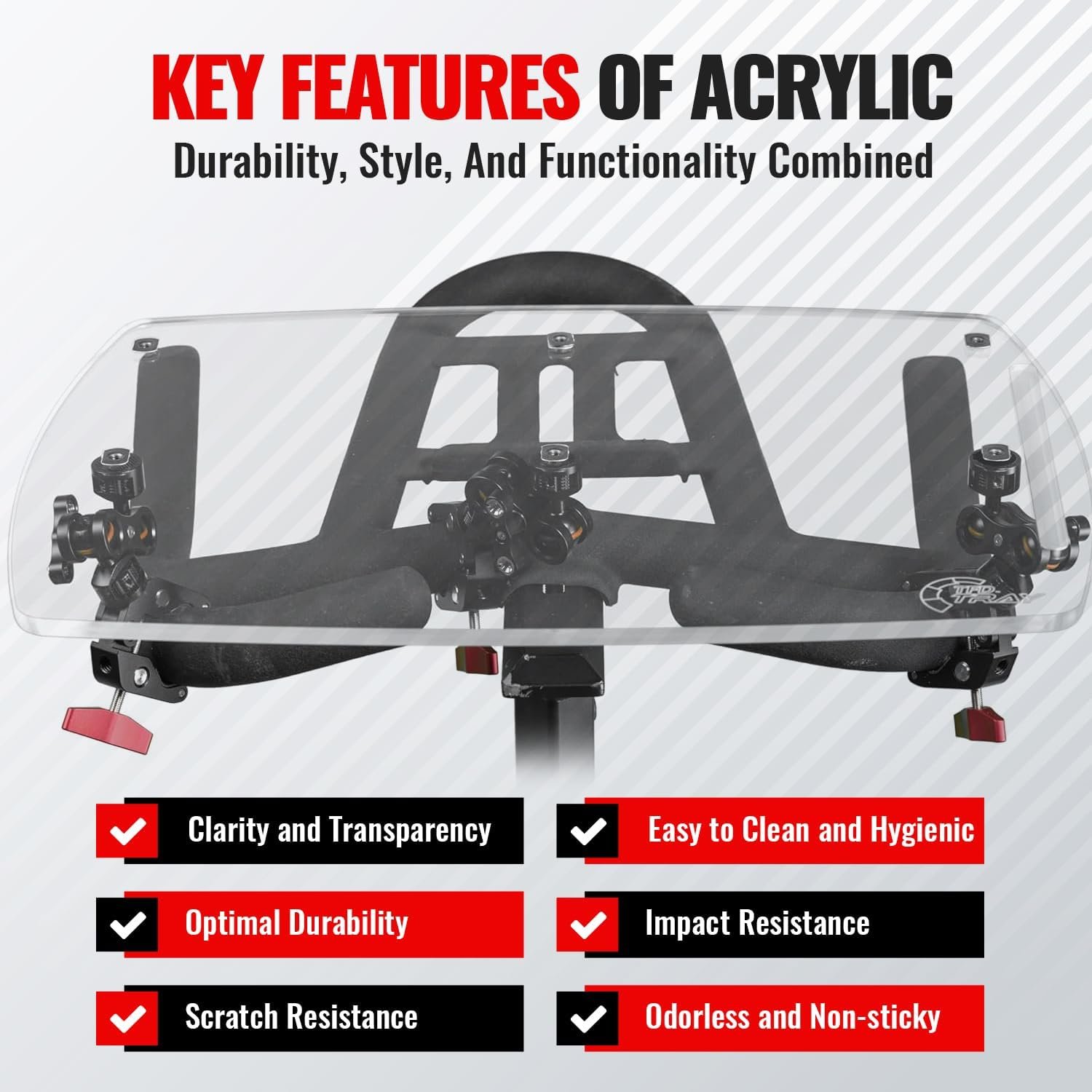 Kick your productivity into high gear! The TFD Universal Tray seamlessly turns your compatible Cycling Bike into a functional dual-purpose workstation—work, meet, read, stream, and watch TV while you ride. This supportive acrylic tray fits onto your handlebars and is the perfect laptop tray or holder for your tablet, phone, books, and other devices!