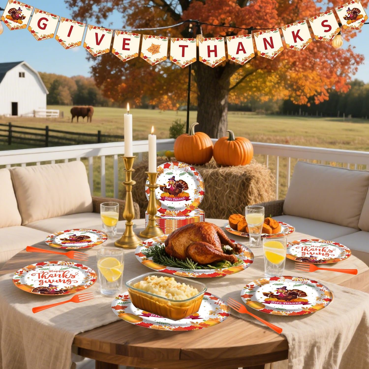 · LET YOUR GUESTS FILL THEIR PLATES WITH TURKEY: Our disposable tableware is the perfect choice for almost thanksgiving fall them party for office school holid.