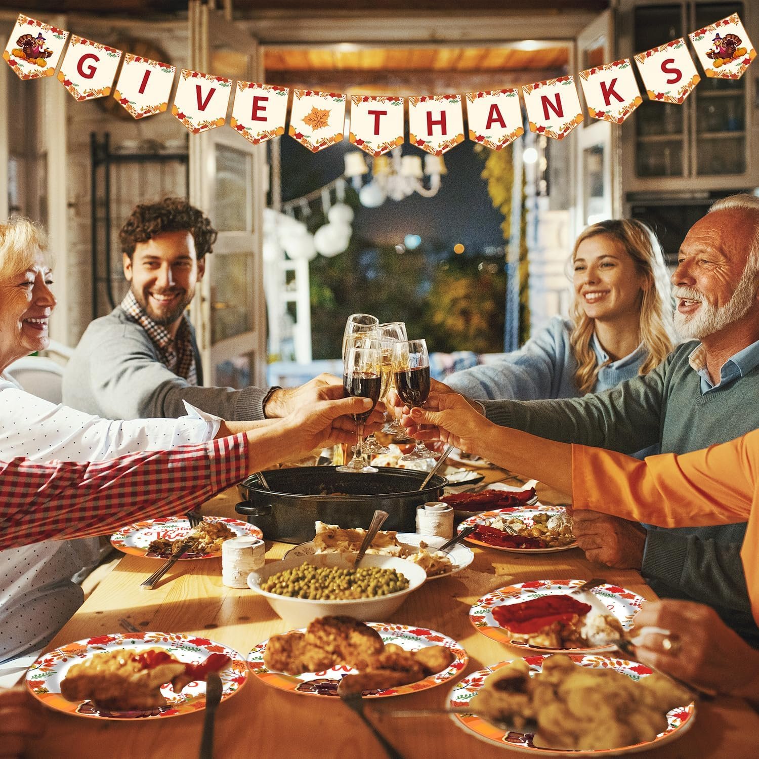 ··2025 THANKSGIVING TURKEY SUPPLIES: 2 pattern Thanksgiving turkey Harvest design for dinner plates,Featuring a vibrant fall-themed design with pumpkins, leaves,and acorns,with the festival implication of celebiating the harvest.Dessert turkey plates with the words ‘Give Thanks’, a cheerful turkey standing on pumpkin,Surrounding it are autumn leaves in rich hues of red, orange, and gold, along with small pumpkins and delicate foliage. Adds a warm, grateful touch, perfect for your Thanksgiving feasts and harves.