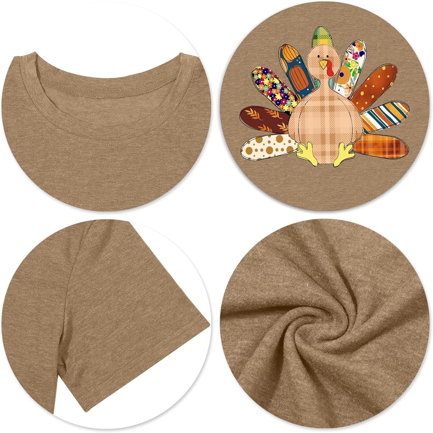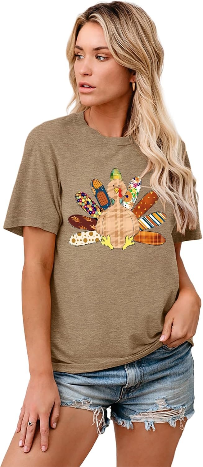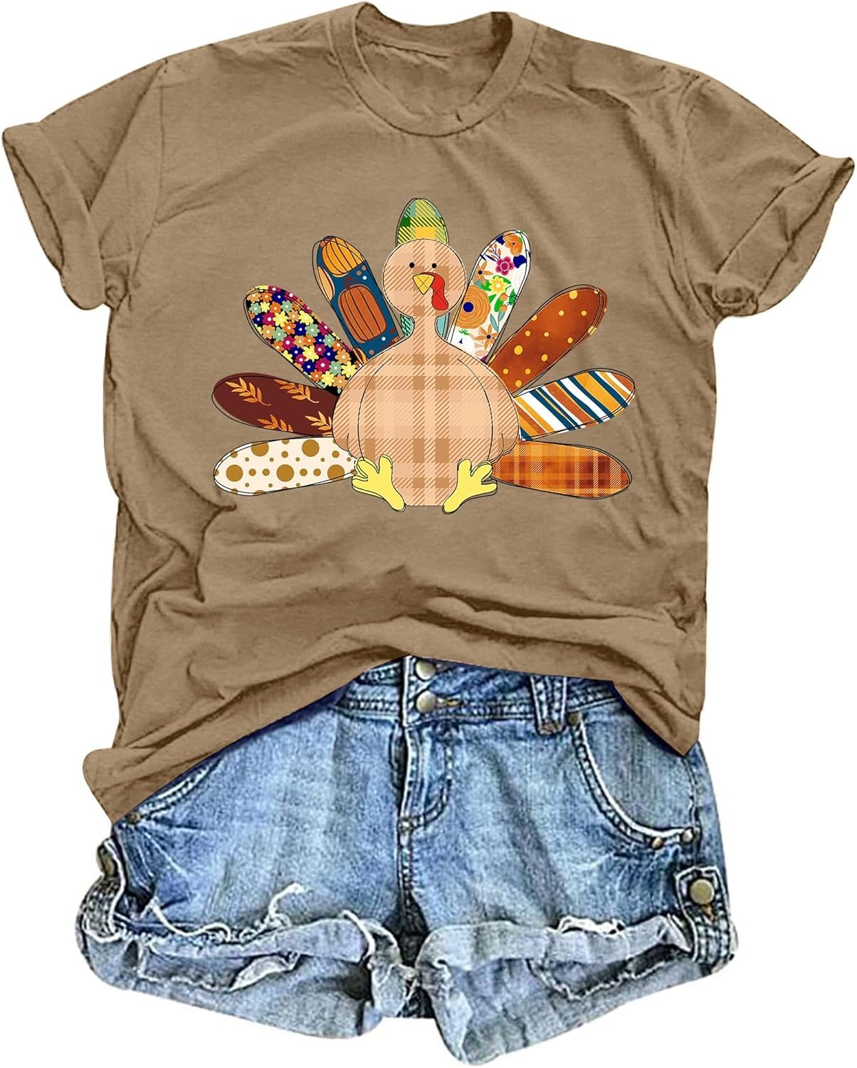 Thanksgiving Shirts Women Cute Turkey Graphic T-Shirt Casual Thankful Short Sleeve Crew Neck Tee Tops