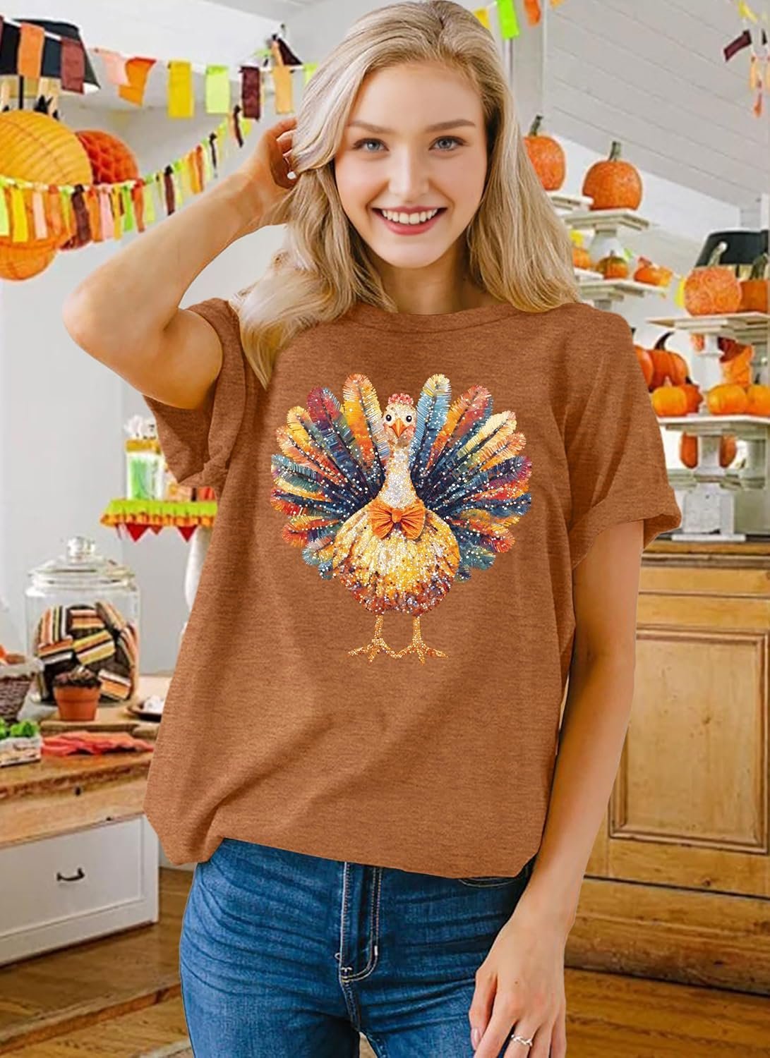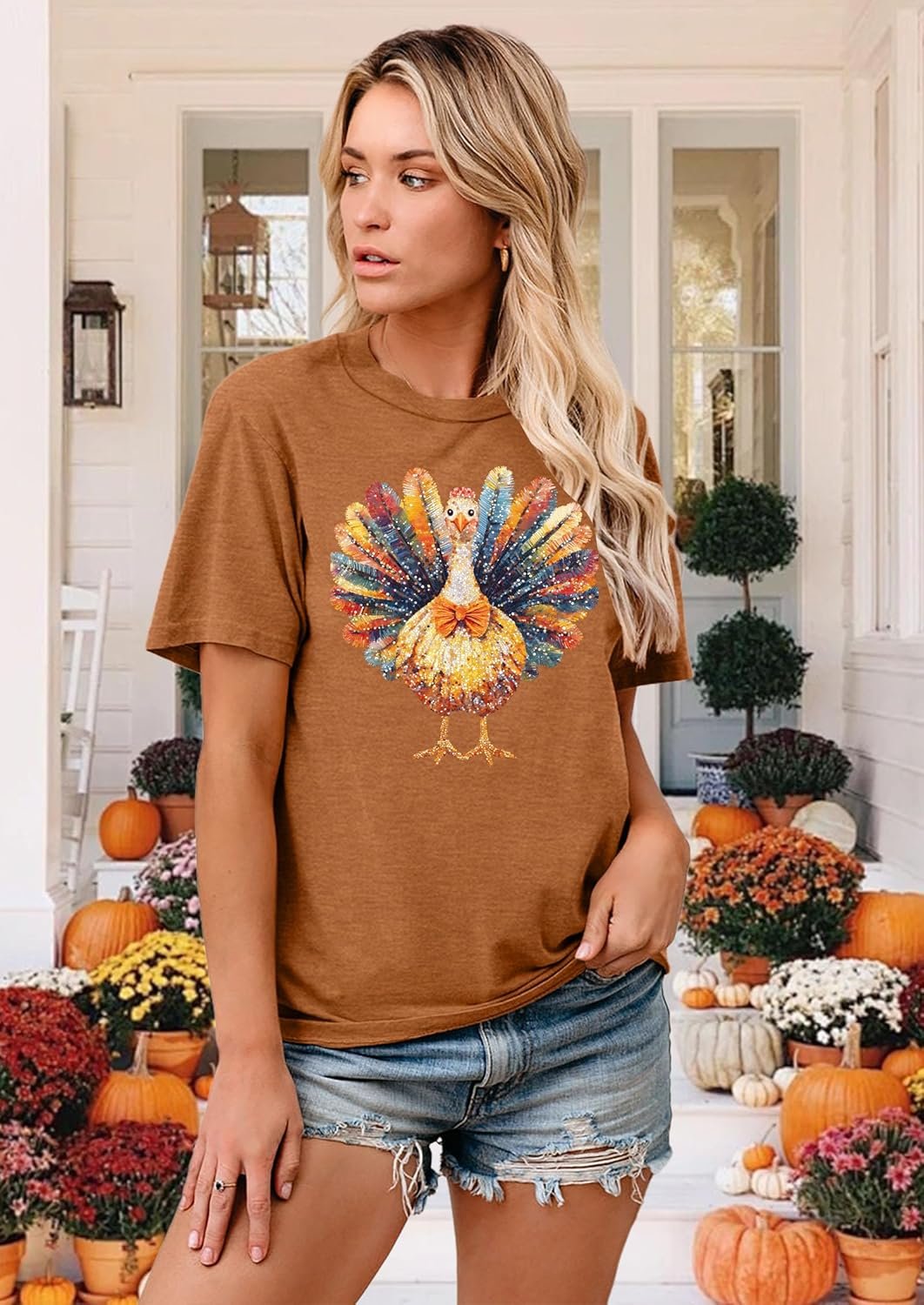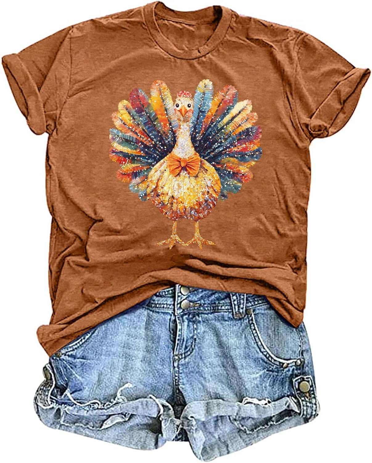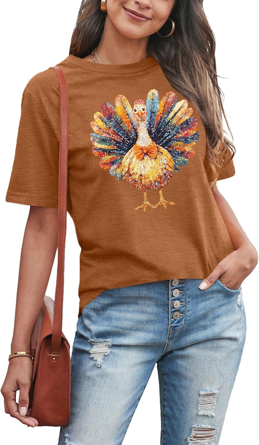 Thanksgiving Shirts Women Cute Turkey Graphic T-Shirt Casual Thankful Short Sleeve Crew Neck Tee Tops