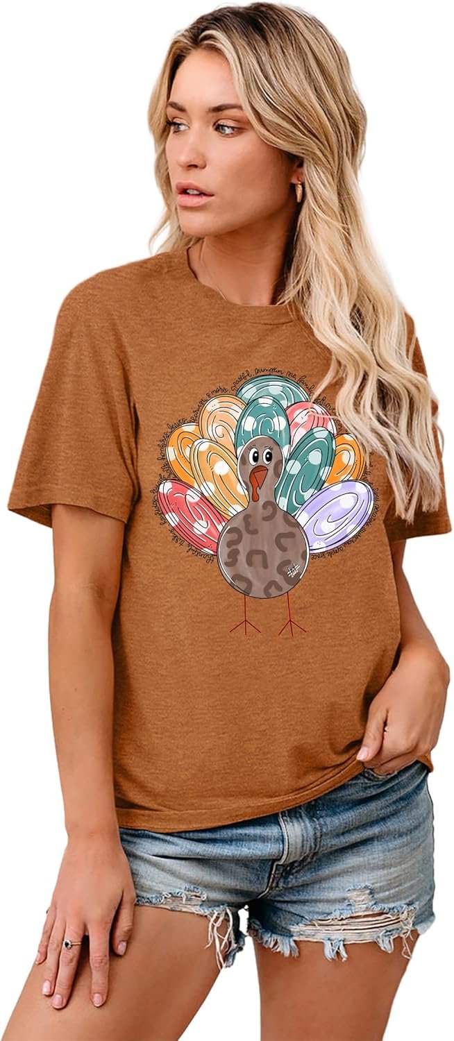 Thanksgiving Shirts Women Cute Turkey Graphic T-Shirt Casual Thankful Short Sleeve Crew Neck Tee Tops