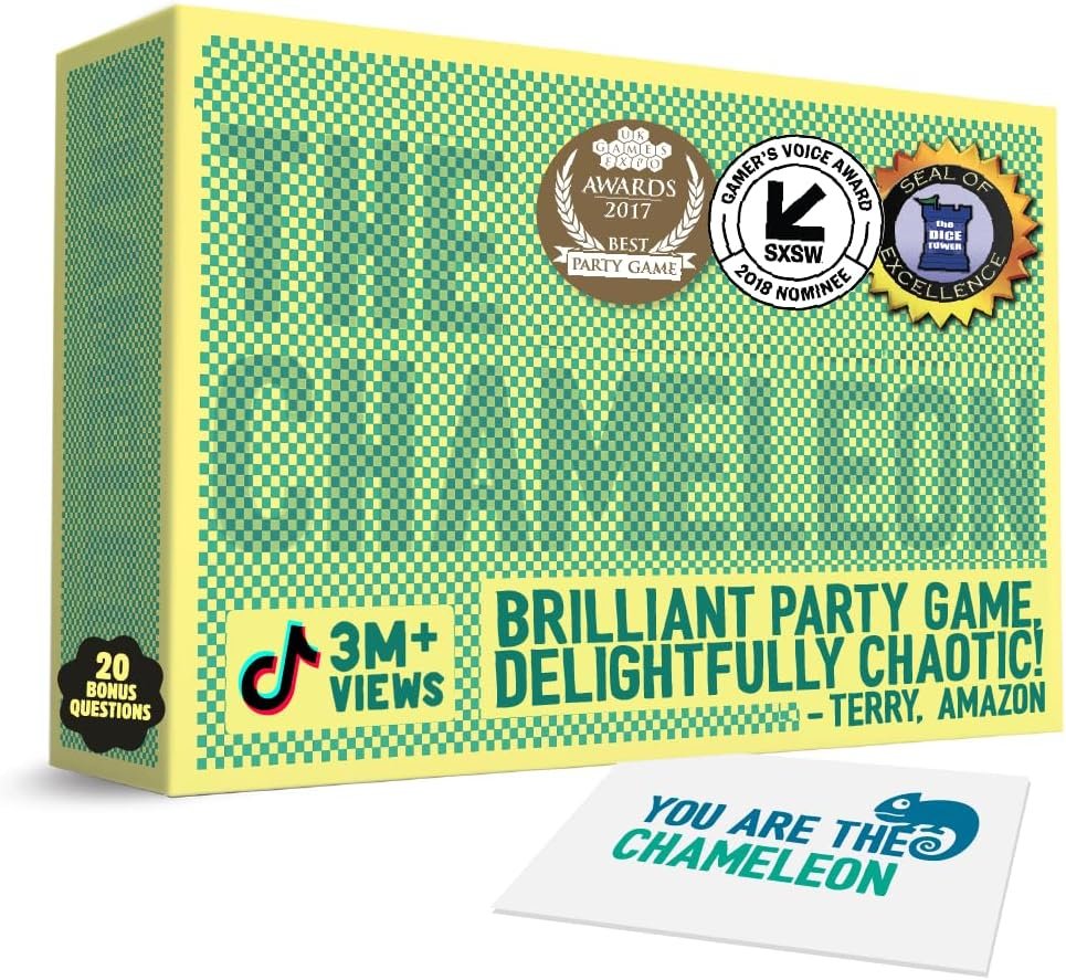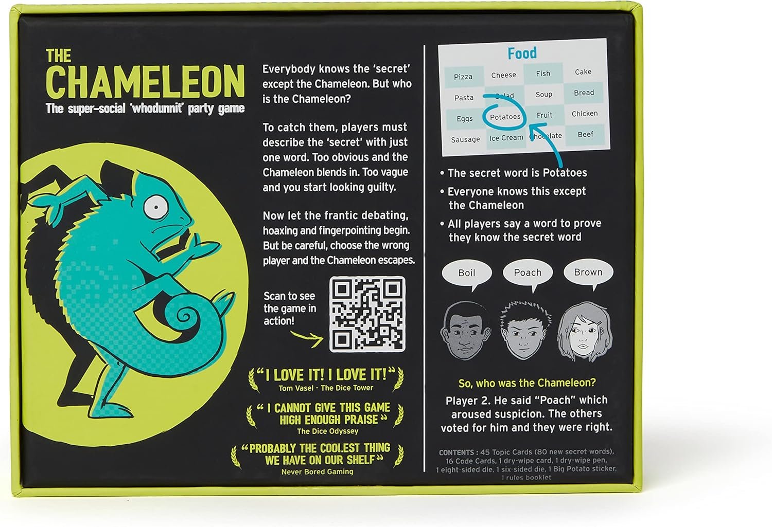 ONE SECRET WORD: In this board game for adults and family everyone knows the secret word—except for the player with the chameleon card