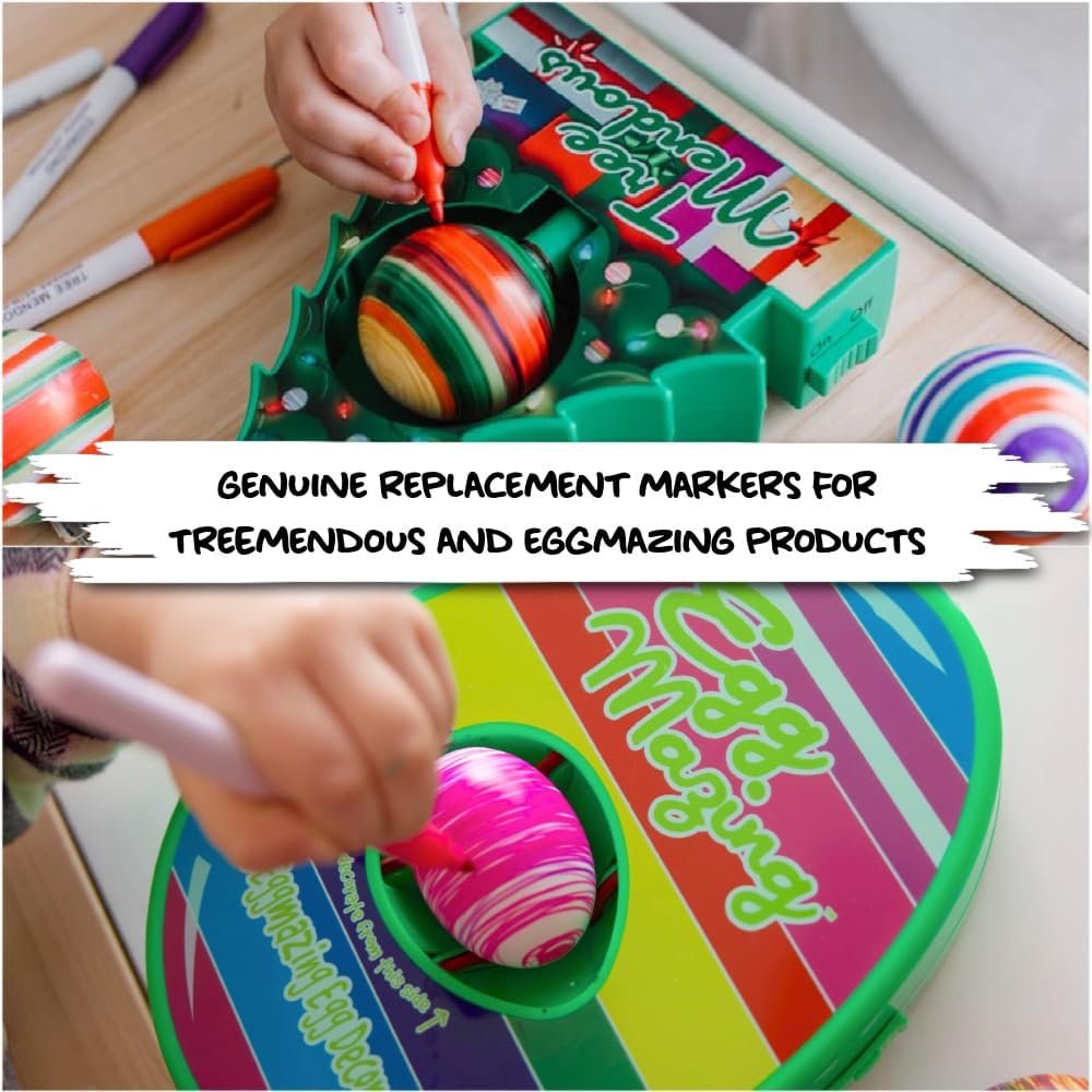 GENUINE REPLACEMENT MARKERS – Official replacement markers for The Eggmazing Egg Decorator, The Treemendous Ornament Decorator and The DinoMazing Egg Decorator