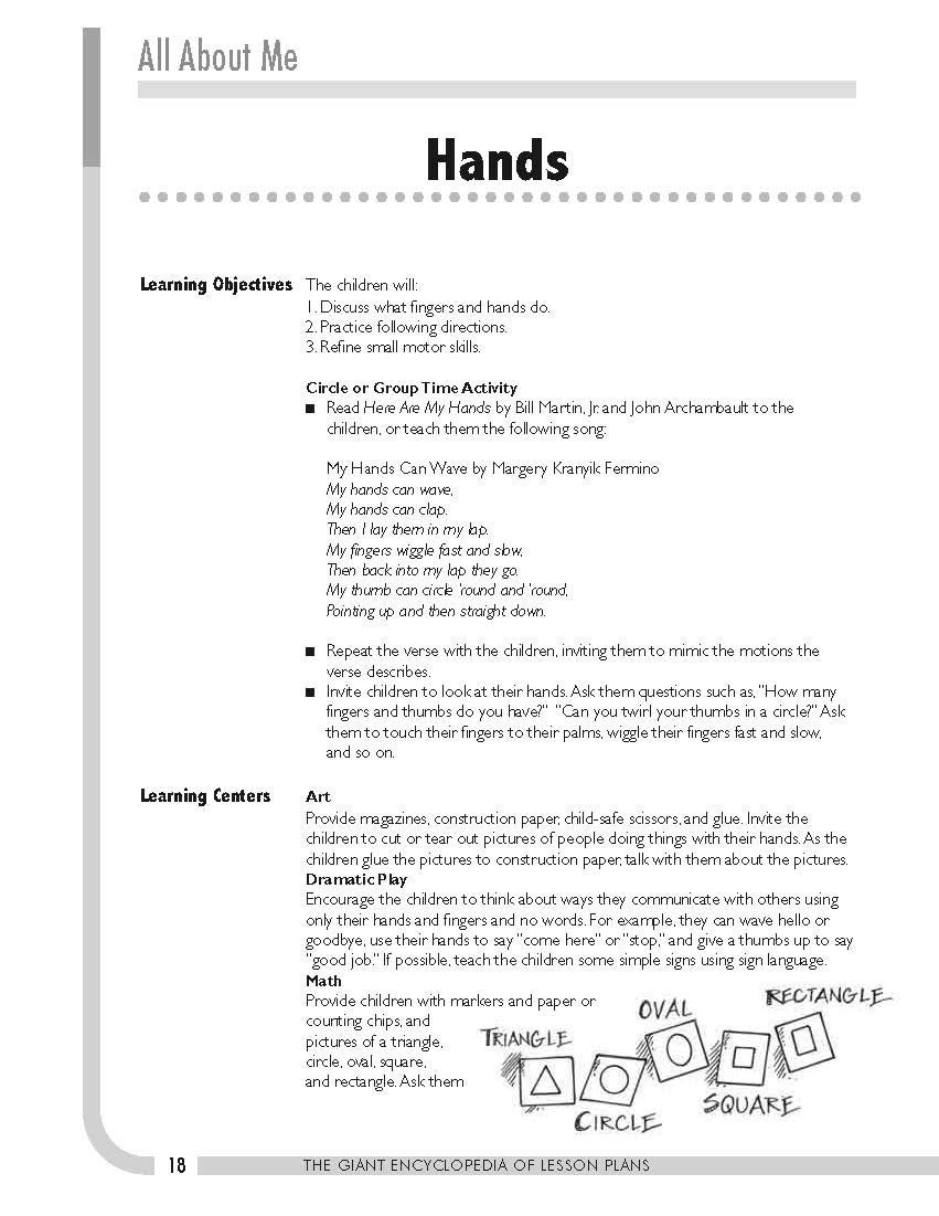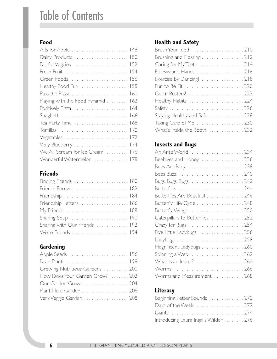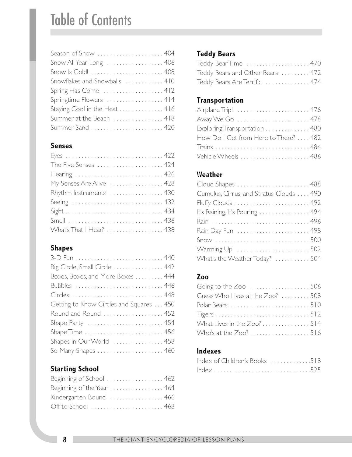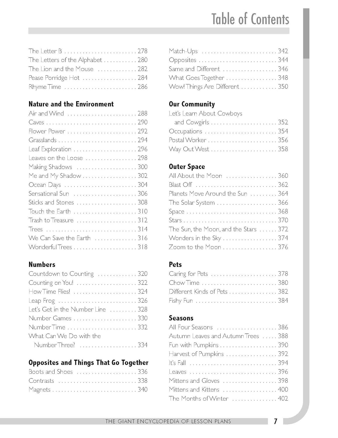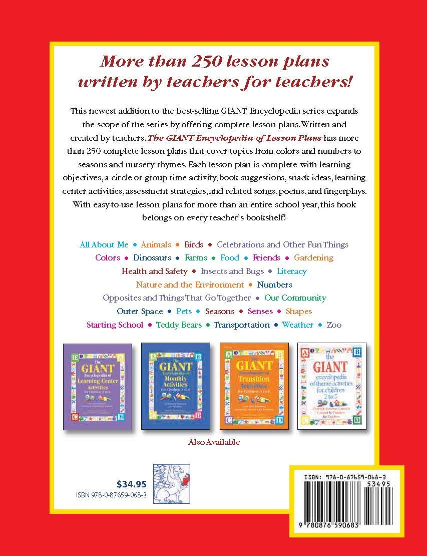 This newest addition to the best-selling GIANT Encyclopedia series expands the scope of the series by offering complete lesson plans. Written and created by teachers, The GIANT Encyclopedia of Lesson Plans has more than 250 complete lesson plans, covering topics from colors and numbers to seasons and nursery rhymes. With an easy-to-use preschool lesson plan curriculum for more than an entire school year, this book belongs on the bookshelf of every preschool teacher, homeschool parent, and childcare professional!