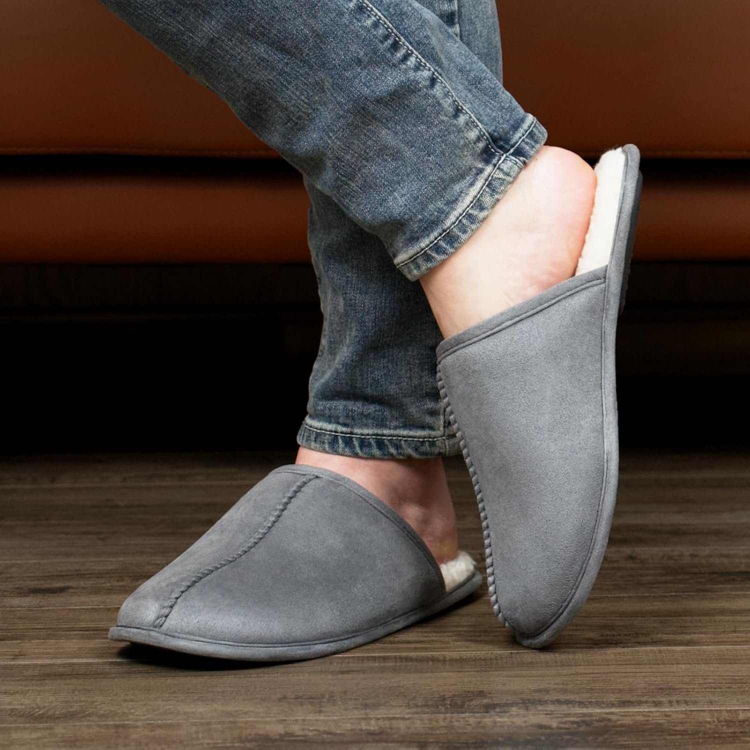 Our signature house shoes are engineered for relaxation and style, featuring top-tier faux suede and a rich fleece lining that envelops your feet in warmth and comfort.