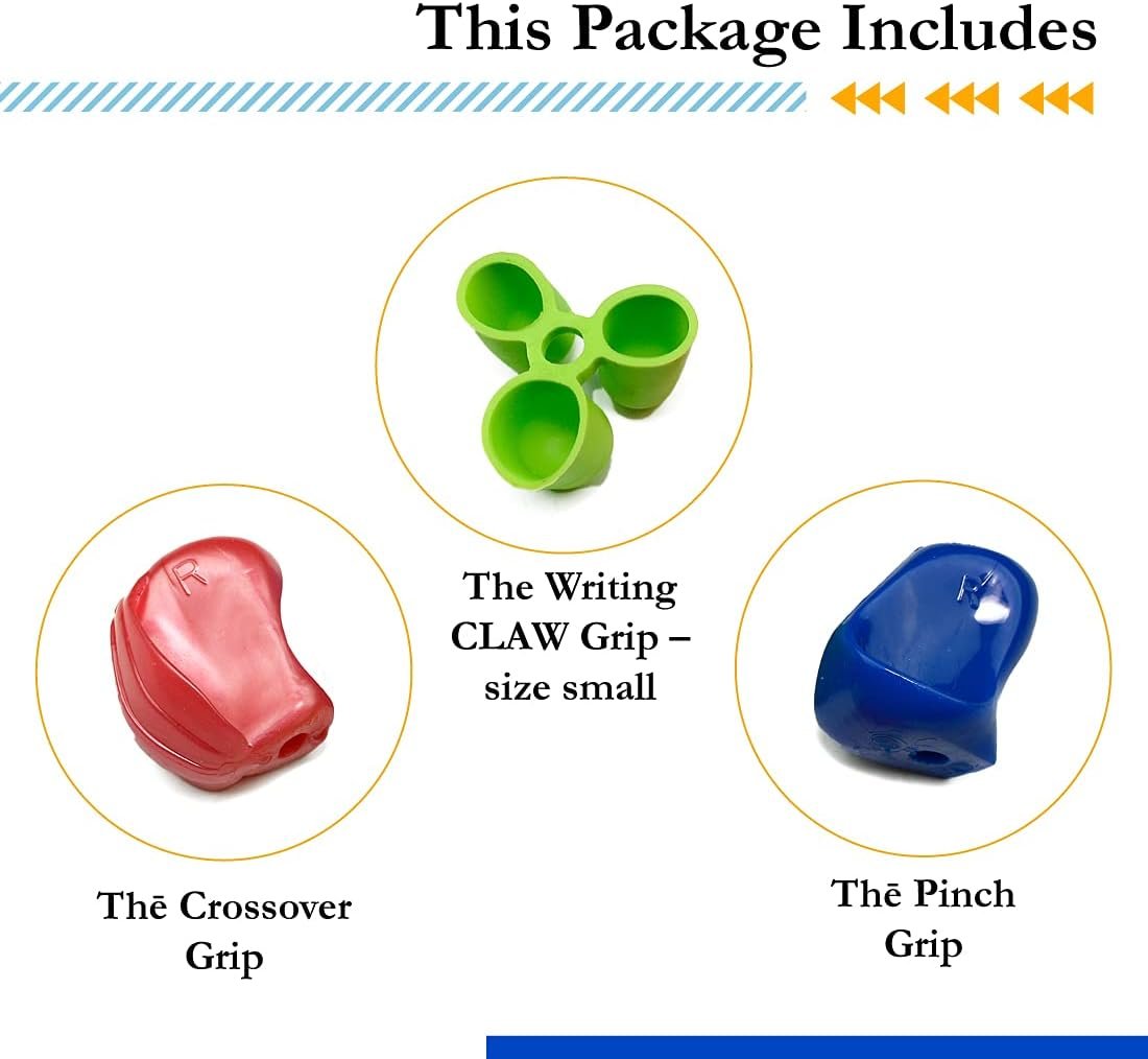 Pencil Gripper: The Pencil Grips were designed by a doctor & are widely used in classrooms, at home, & in therapeutic settings. The unique shapes are designed to be “one size fits all” to help the hands of kids & adults, & works for righties & lefties.