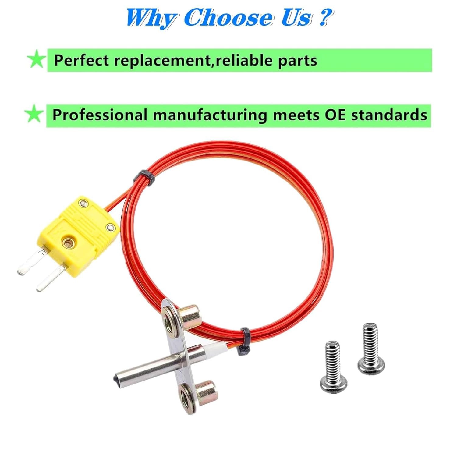 Package Include: Includes 1 Thermocouple Probe Sensor with Fixing Bracket and 2 Screws for easy installation and hassle-free replacement.