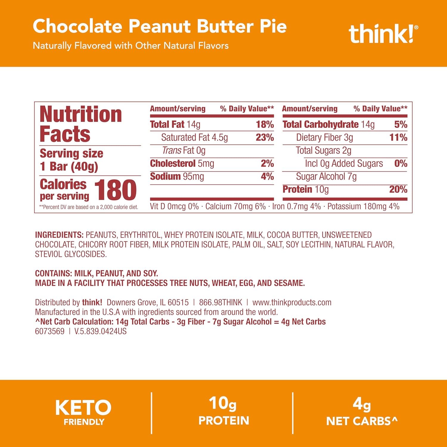 What do you do when you have a sweet tooth but want to hit your protein goals too? Say yes to think! Delight protein bars with decadent dessert flavors and textures you’ll have to experience to believe! With 10g of protein in every keto friendly bar alongside smooth peanut butter and rich chocolate taste with roasted peanut pieces, our Chocolate Peanut Butter Pie Delight bar means you’ll never have to think twice when your internal clock says it’s time for a snack! *Not a low calorie food