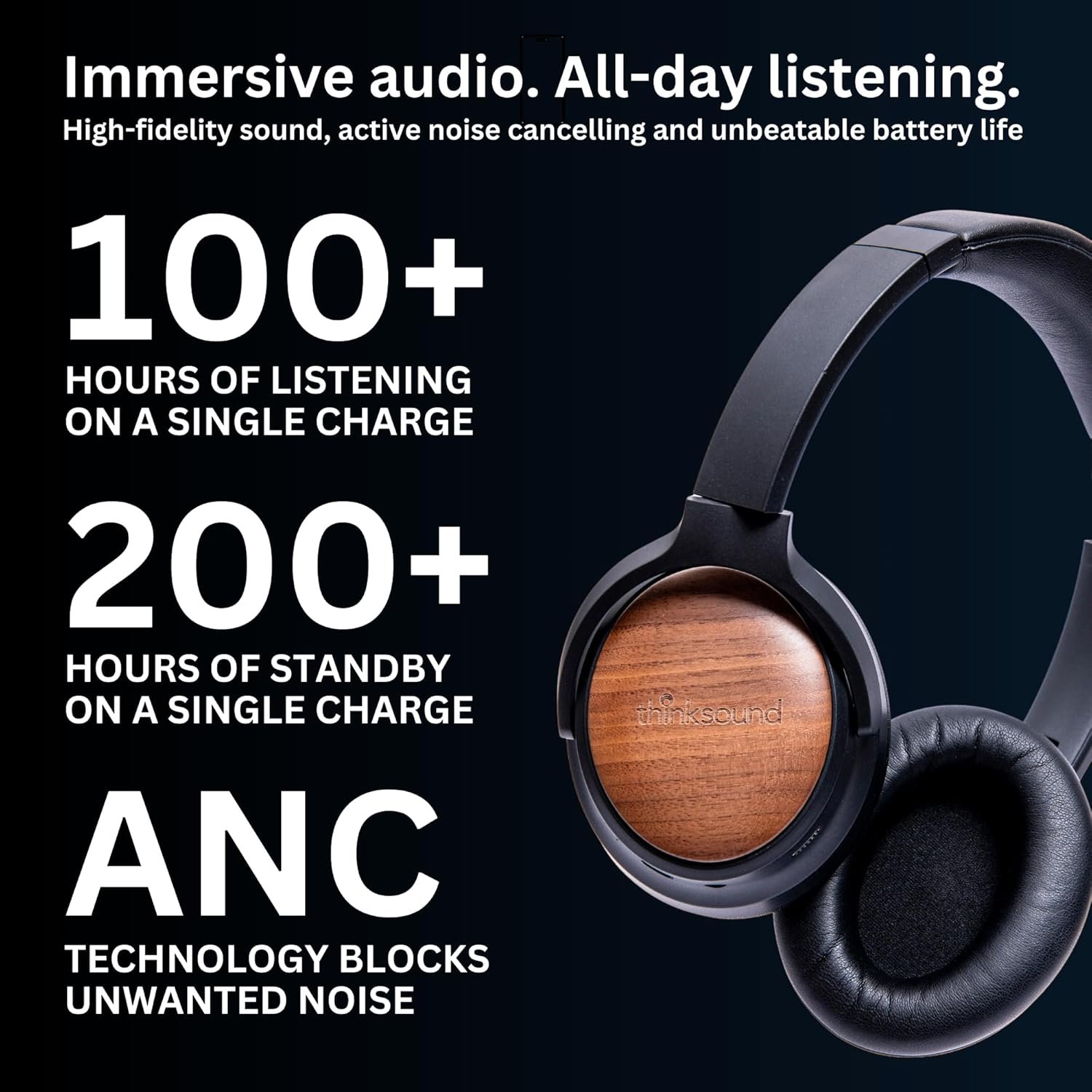 Wireless headphones with 100+ hours of listening
