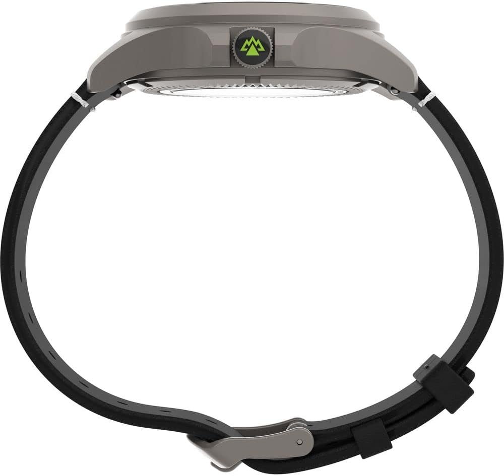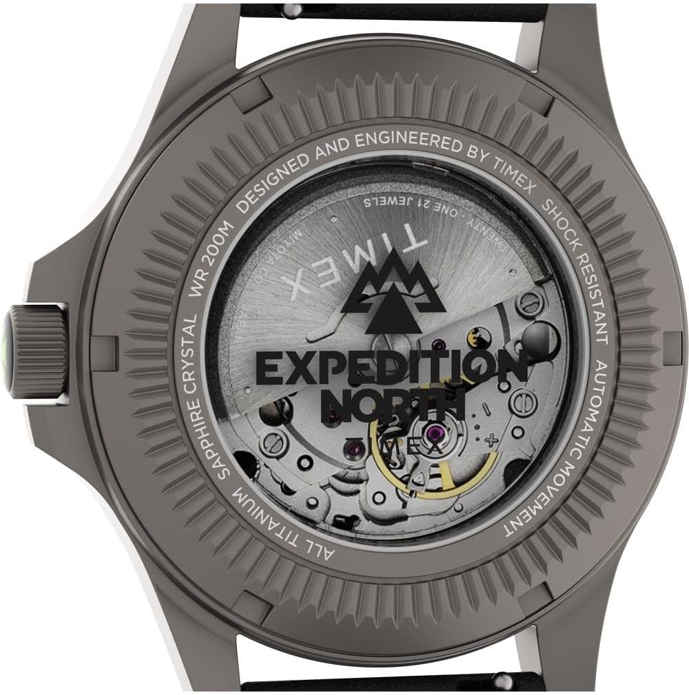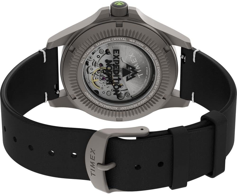 This Expedition North® Titanium Automatic is ready to go the distance. Constructed with the most durable materials, the shock-resistant, 41mm case is rendered in true Titanium, complemented by a scratch-resistant, anti-reflective sapphire crystal and 200 meters of water resistance. It features a 21-jewel automatic movement and a quick-release, revolutionary Ecco™ DriTan™ leather strap that uses water-saving technology. This timepiece lives up to the Timex legacy of fully equipping you for your adventures ahead while embodying the kind of tradition you can wear every day.