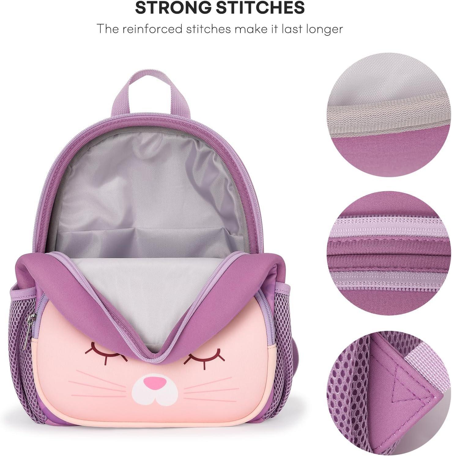 【DIMENSION】 This toddler girl backpack measures 12x 4 x 10 inches. It’s the perfect size for kids ages 1~6 years to go to school or travel.
