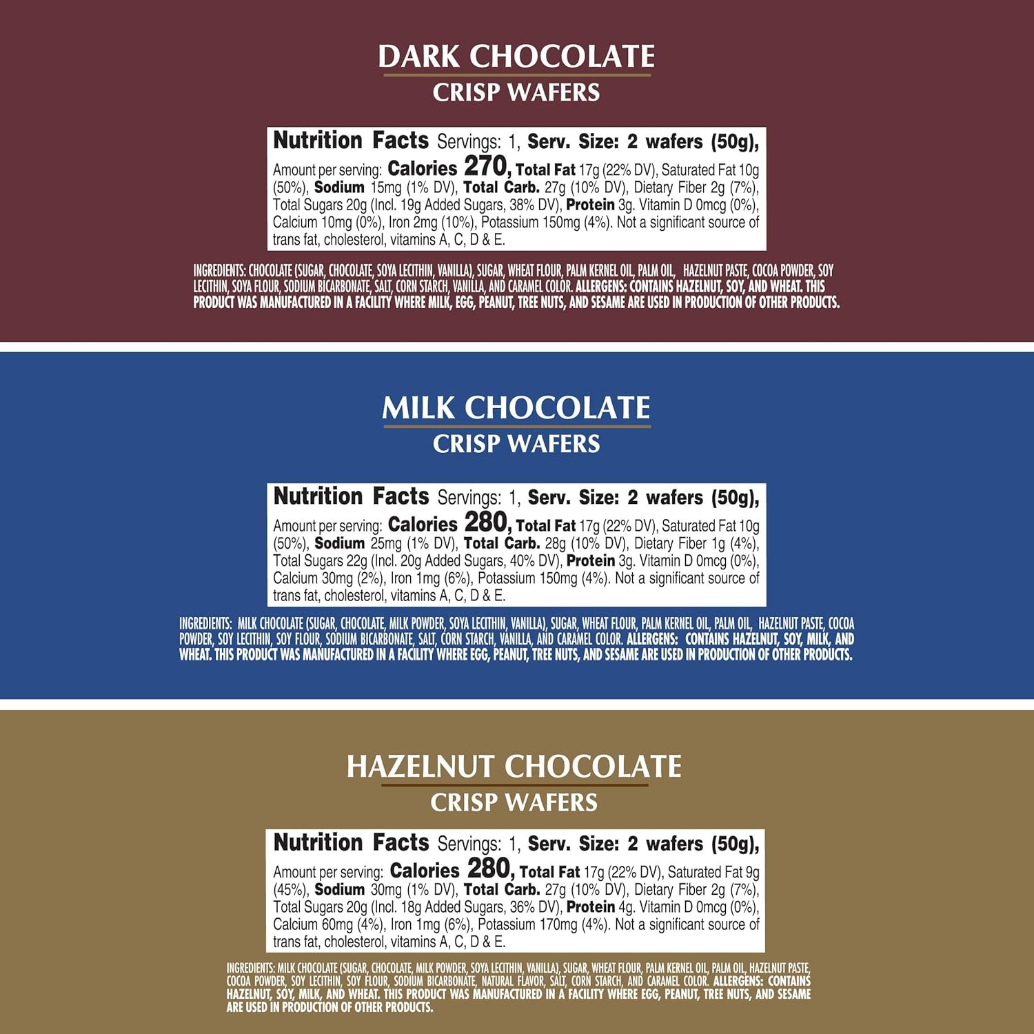 Decadent Chocolate Indulgence. Choose from rich Milk Chocolate, Nutty Hazelnut, or intense Dark Chocolate—each crafted into a crisp, airy wafer and coated in premium European chocolate for a satisfying, elevated treat