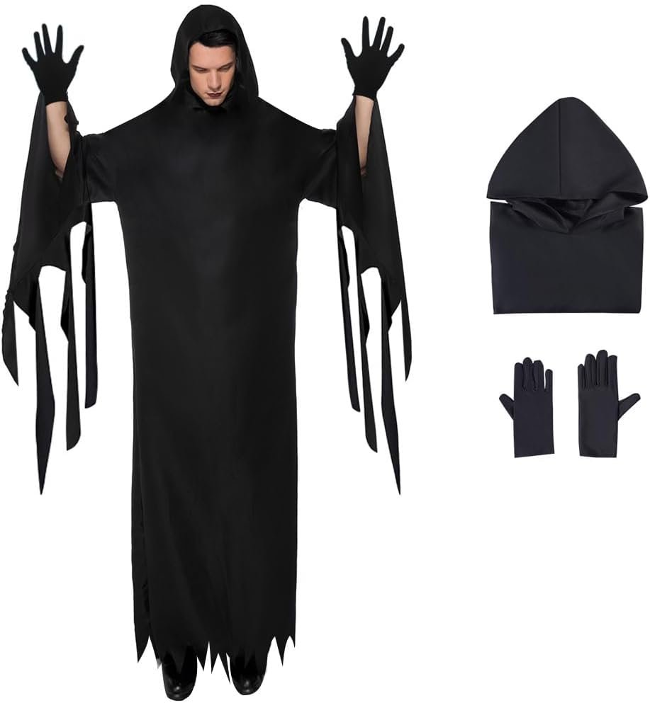 Halloween Horror Movie Cosplay Costume Outfit with Mask Black Hooded Robe for Women Men