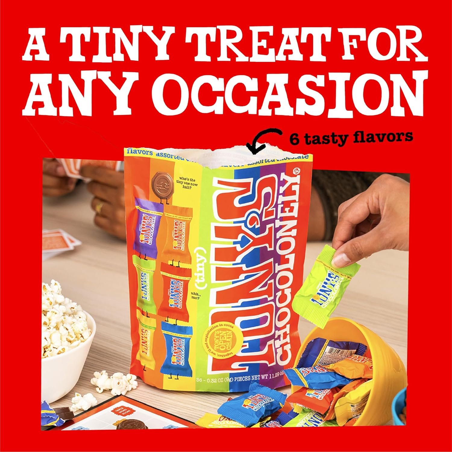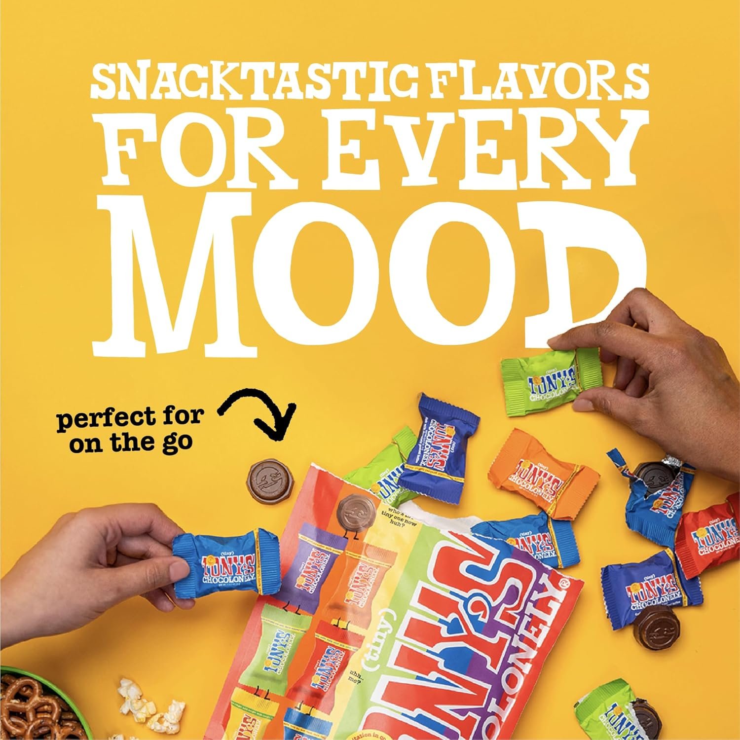 TINY TONY VARIETY PACK: Our Tiny Tony Variety Pouch offers 14 individually wrapped chocolate chunks in 6 delicious flavors: Milk Chocolate, Milk Chocolate Caramel Sea Salt, Milk Chocolate Honey Almond Nougat, Dark Milk Chocolate Pretzel Toffee, Dark Chocolate, and Dark Chocolate Almond Sea Salt. Perfect for sharing or indulging in a personal chocolate adventure!