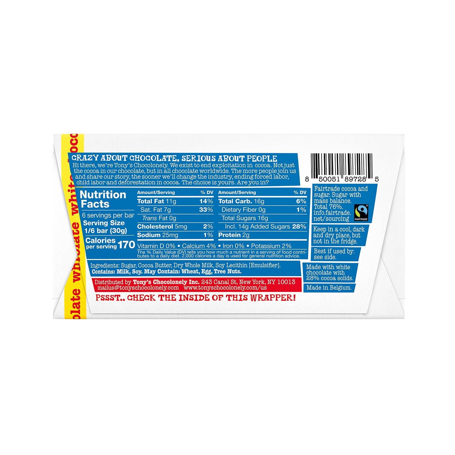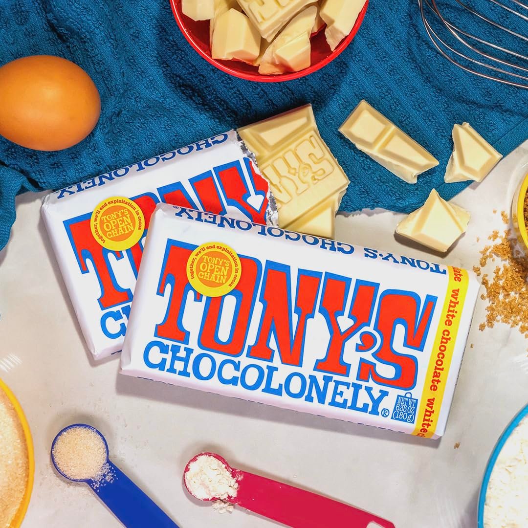 Finally, it’s here! Tony’s White Chocolate Bar is melt-in-your-mouth, smooth and classically indulgent. Perfect for that baking project you’ve been wanting to try, or enjoying straight out of the wrapper! White chocolate lovers rejoice. As always, the cocoa butter used in our white chocolate is ethically sourced and made from 100% traceable cocoa beans. Pretty sweet, huh?
