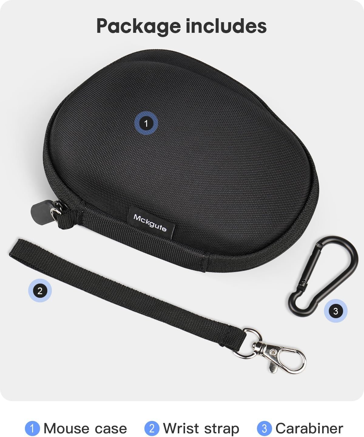 Mckgute Travel Mouse Case Compatible With Logitech MX Master 4/ MX Master 3S/ Master 3/ Master 2S Computer Wireless Mouse- Mice Carrying Protective Storage Bag Packing: 1x Travel Wireless Mouse Case, 1x Carabiner, 1x Hand Strap,