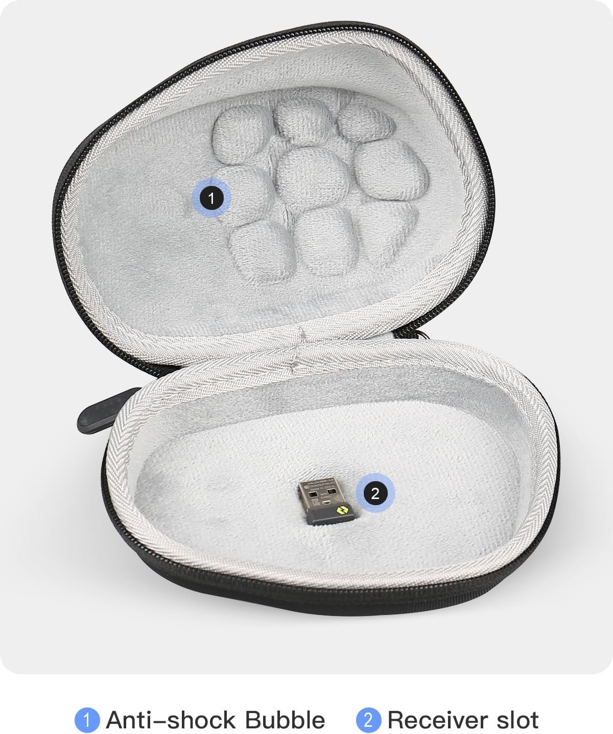 [Thoughtful design] The lower inner layer of the wireless mouse protection case has a dedicated groove that can secure your mouse USB receiver, preventing it from being misaligned or damaged