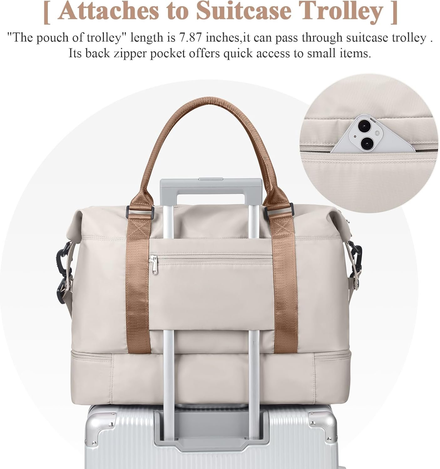 Perfect size travel bag with large capacity, wet pocket, luggage sleeve and other convenient travel design.