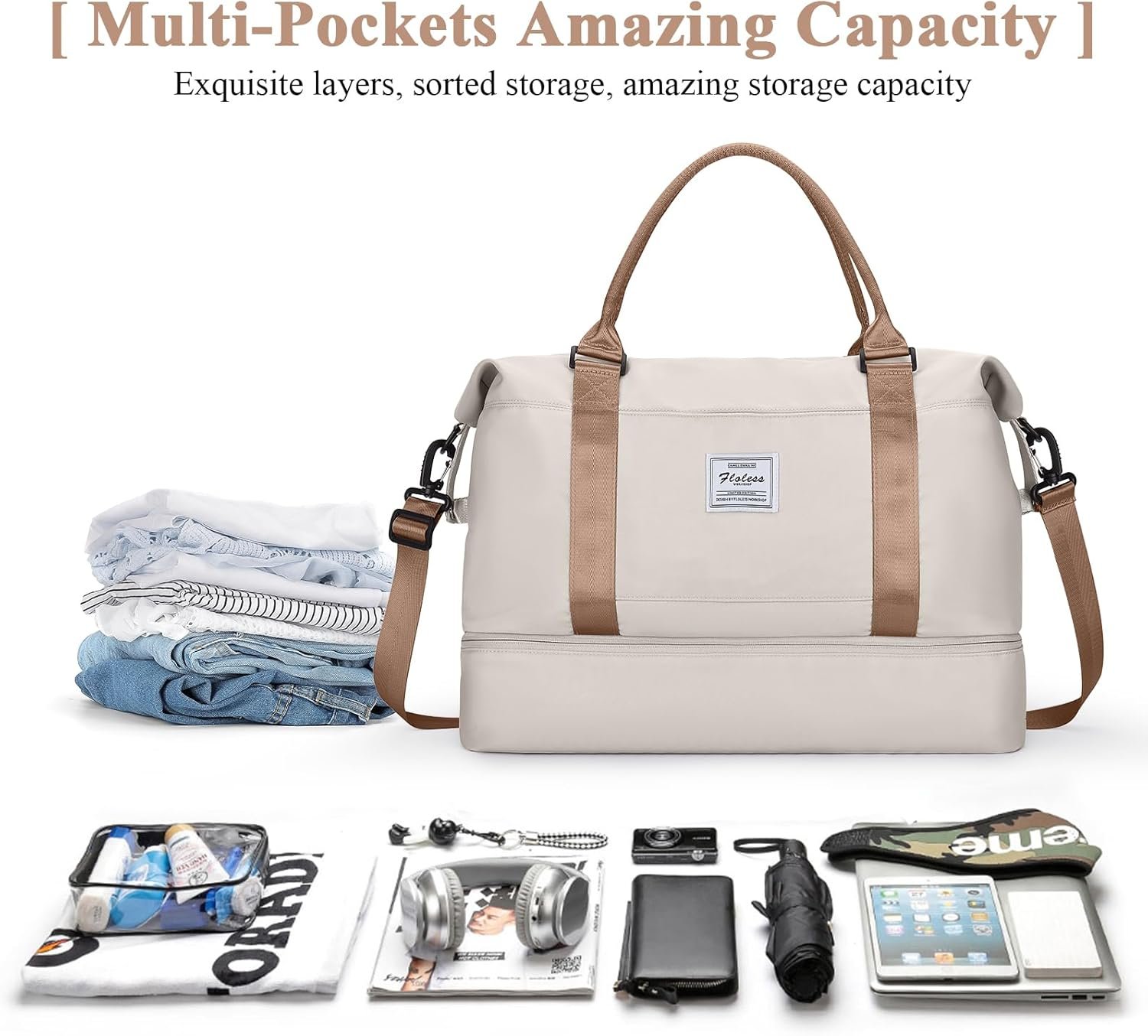 Large Capacity and Multiple Pockets: It has a capacity of 38 L and can hold 6 to 8 pieces of summer clothes,cosmetics,toiletries,etc;This travel bag has 7 pockets, which ensure you have a place for all thing