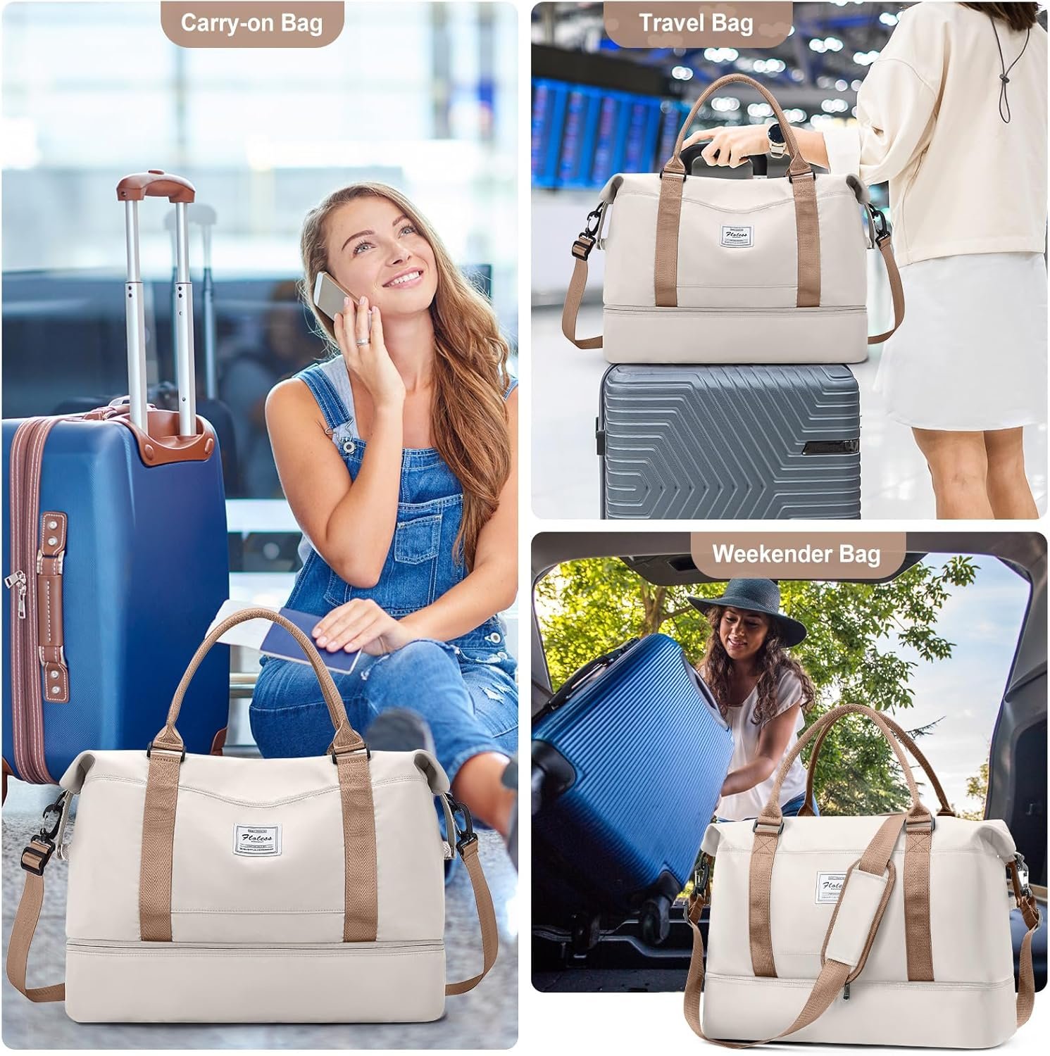 Weekender Bag with Shoe Compartment: A separate shoe compartment can help you carry and keep your shoes better in your travel bag,even if it is dirty and the other objects still won’t get stained
