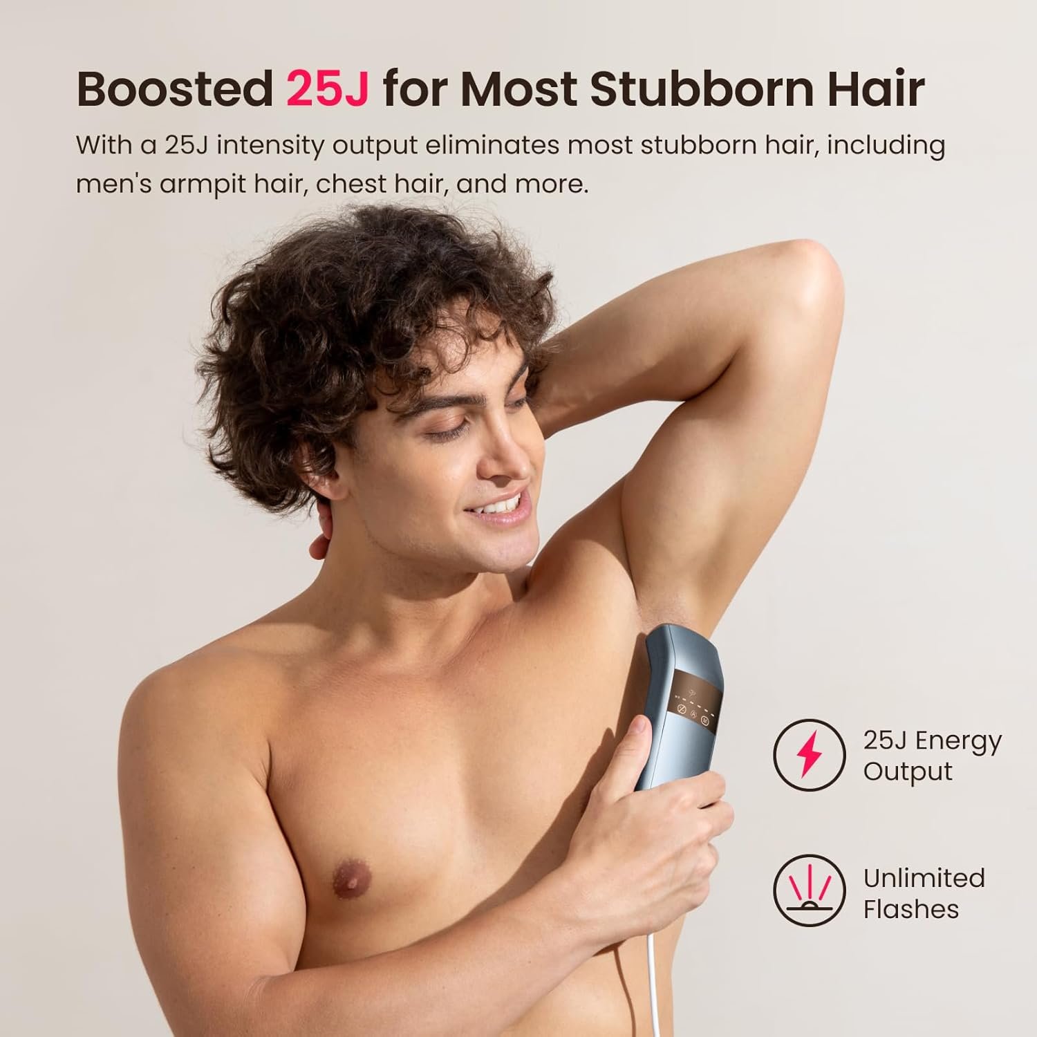 7 Body Modes and 5 Energy Levels: The personalized 35 sensitive levels for precise and whole body hair removal. It can be used all over the body like face, bikini, legs, upper lip, armpits, chest, fingers, toes, and more. The powerful 25J intensity output effectively eliminates stubborn men’s hair, including armpit and chest hair