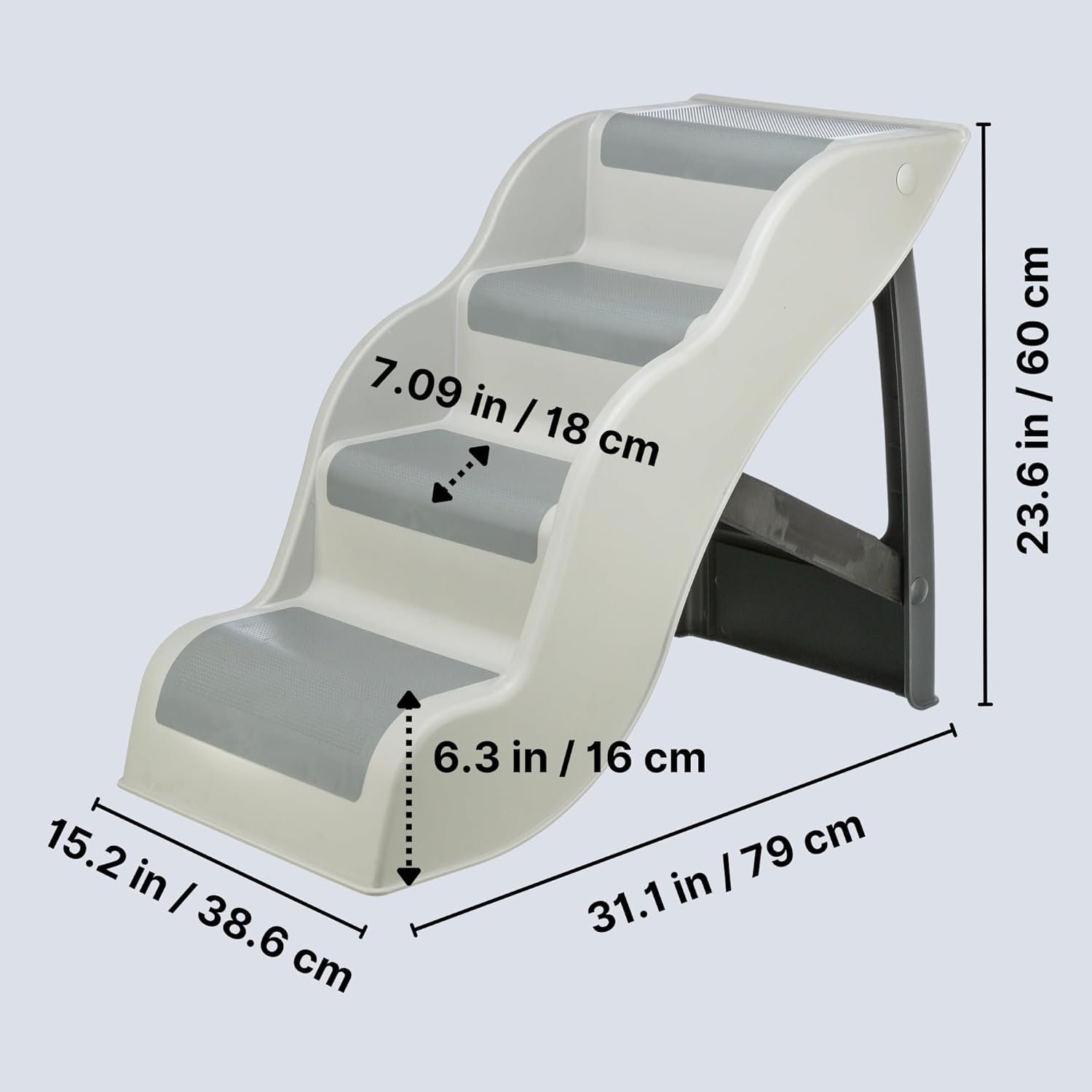 THE RIGHT SIZE: Make sure that our 4 step dog stair meets your demands! These Pet steps measure 31.1” L x 15.2” W x 23.6” H and weight 8,2 lbs, optimal for indoor use