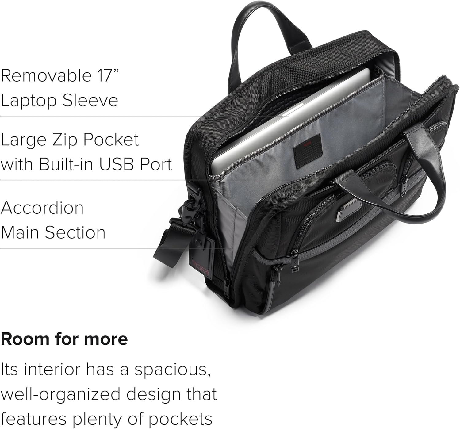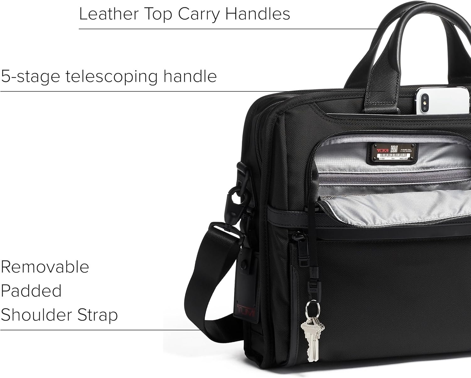 Trackable Bag Briefcase: TUMI’s laptop briefcases feature the exclusive TUMI Tracer program, providing peace of mind by enabling easy retrieval if lost or stolen
