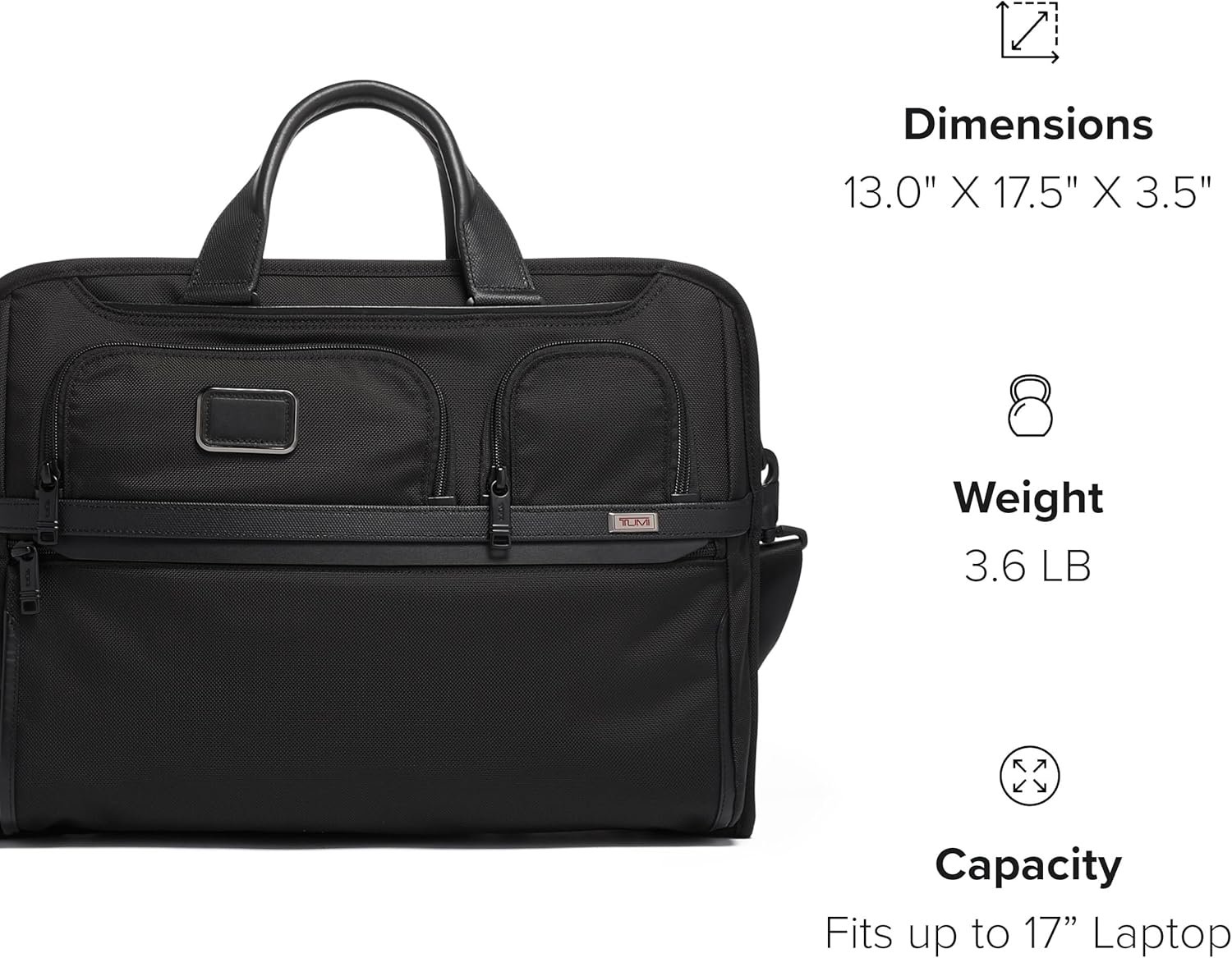 Professional Laptop Briefcase: The TUMI Alpha Compact Large Screen Laptop Brief Bag fits up to a 17-inch laptops, making it an ideal laptop case for travel and business