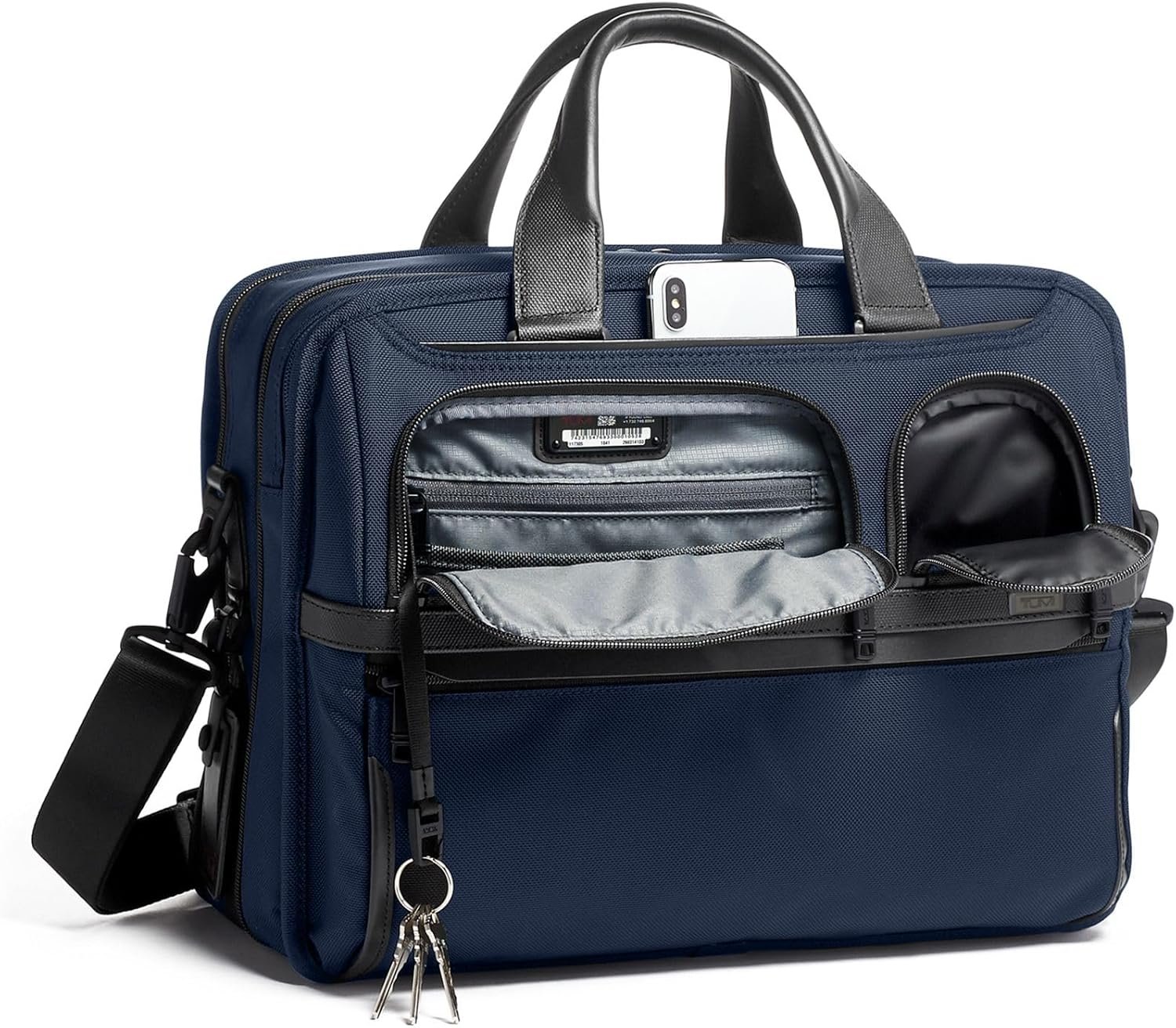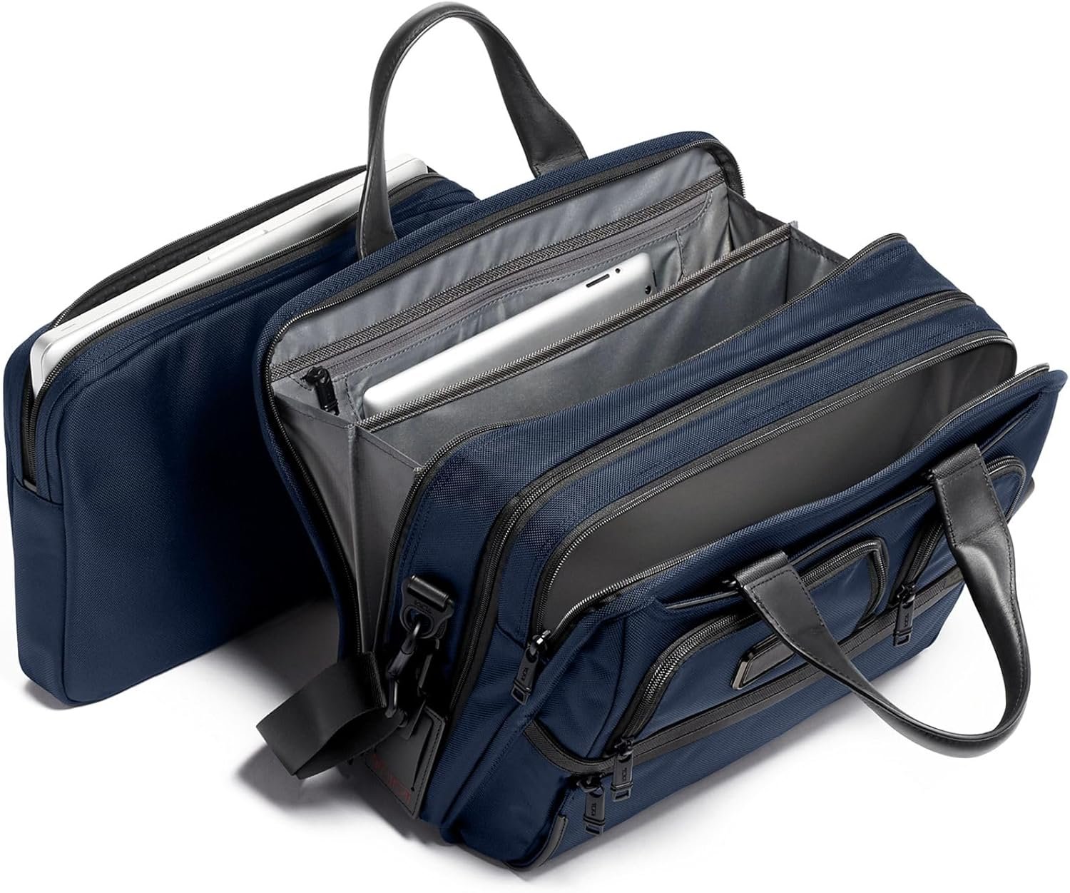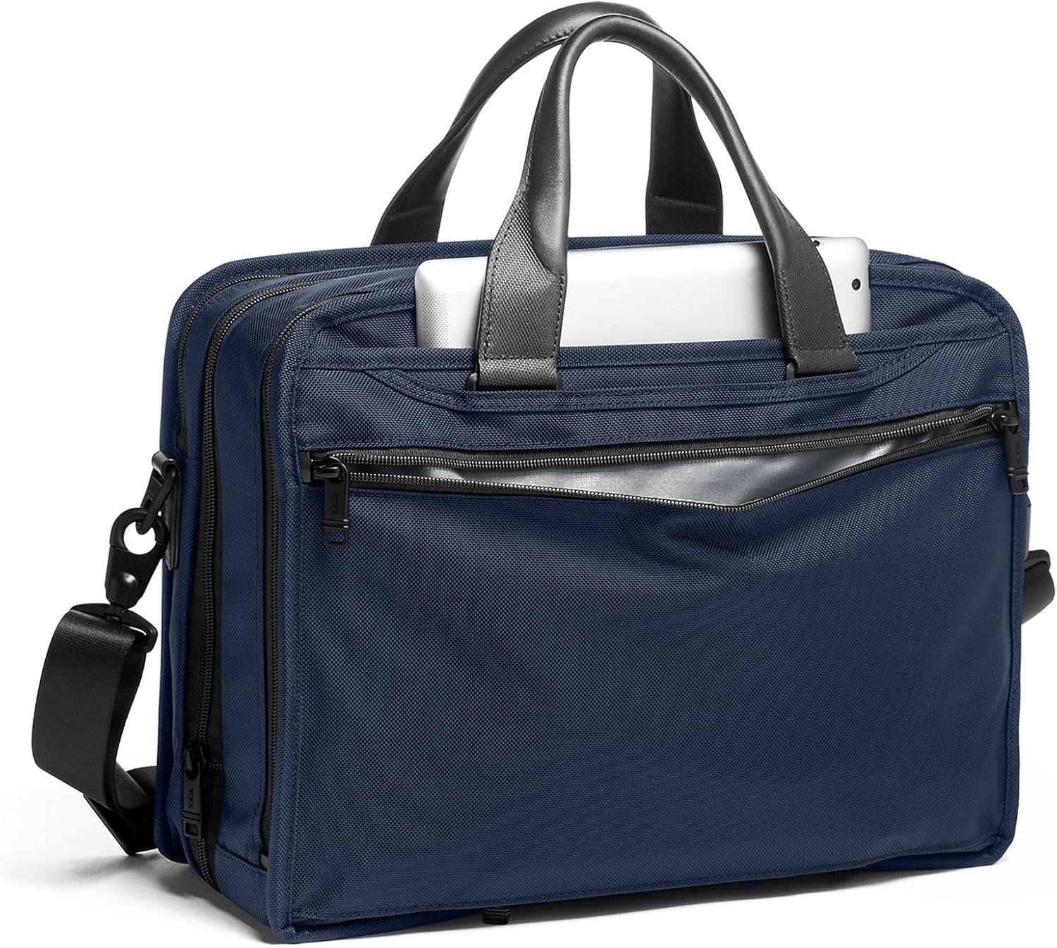 With a removable laptop sleeve for up to 15” screen laptops, an expandable main compartment, and an accordion file organizer, the TUMI Alpha Expandable Organizer Laptop Briefcase provides exceptional versatility and organization. Features include a padded tablet pocket and multiple pockets for accessories. The exterior has two U-zip pockets including one with a water-resistant lining for an umbrella or water bottle. Part of our Alpha Collection, iconic business and travel pieces that bring together innovative design, superior performance, and best in class functionality. Select styles come outfitted with a colorful TUMI Accents Kit (luggage tag, monogram patch, handle wrap and zipper pull ties) for an additional cost. Made from TUMI’s signature, ultra-durable FXT ballistic nylon.