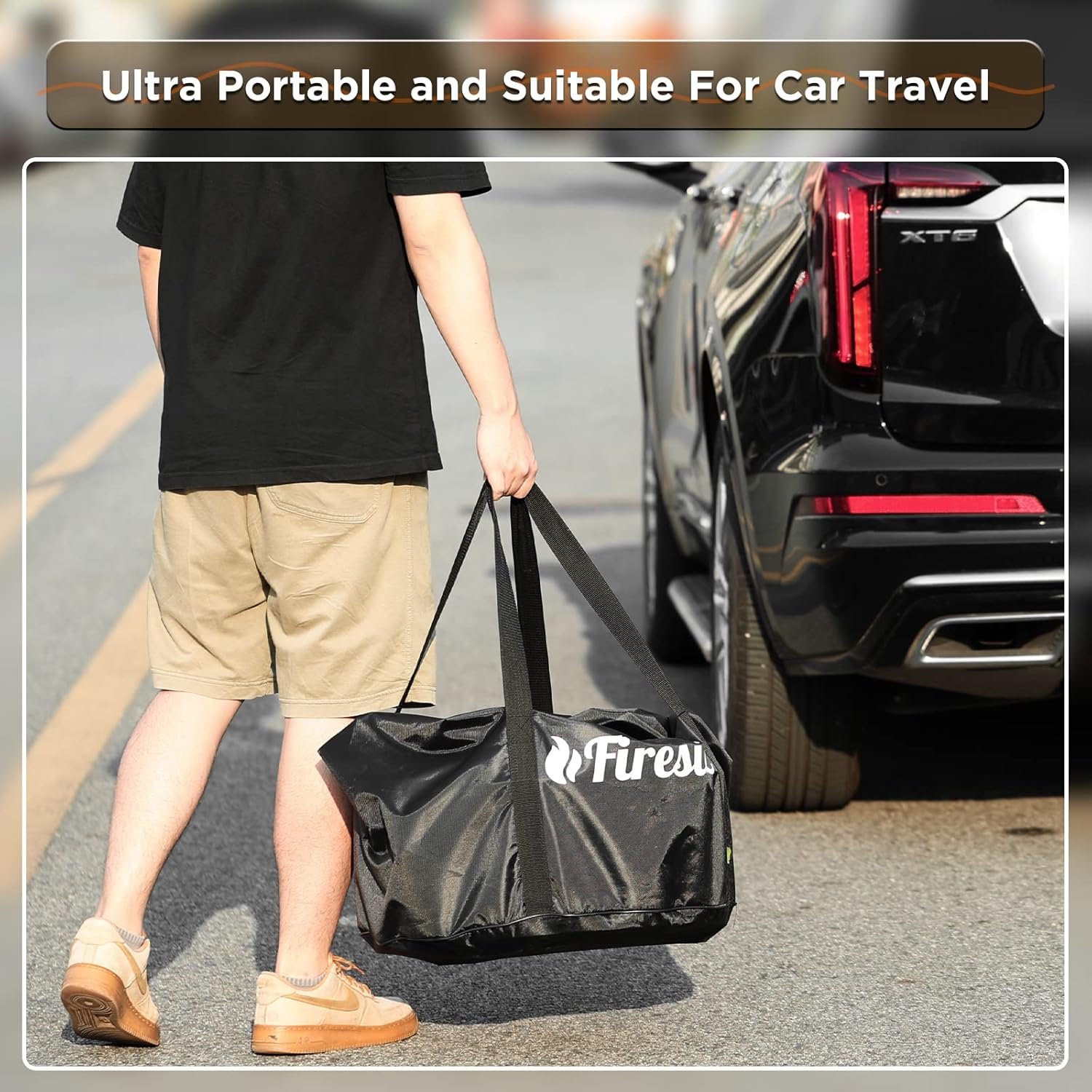 Boasts a unique nested design, making it a highly practical and efficient option for outdoor fires. The fire pit comprises four distinct pieces – a flame ring, top piece, fire tray, and bottom piece with foldable legs – that can be easily assembled to create the fire pit. When not in use, the fire pit can be stored in a compact 8.3-inch height in box, thanks to its nested design, which is perfect for car travel and storage.
