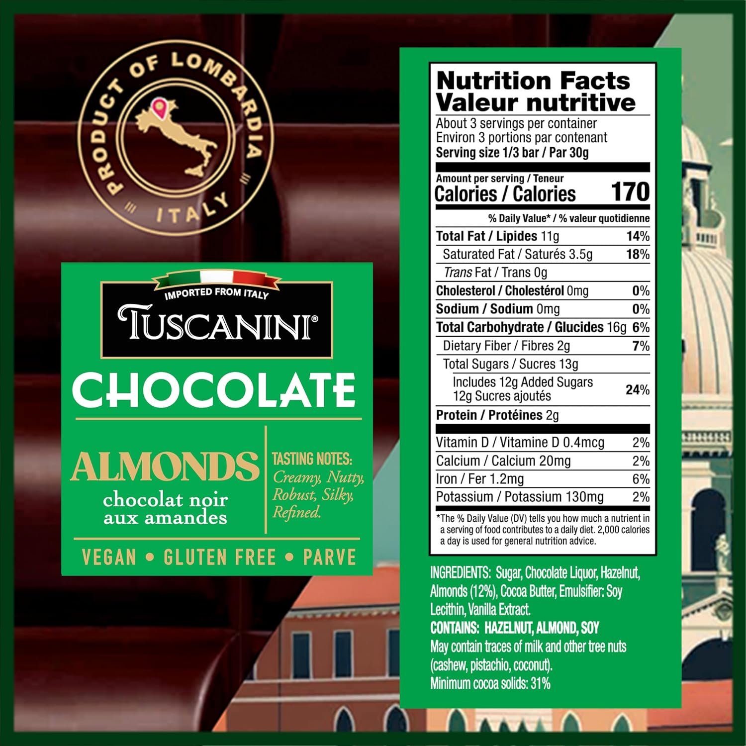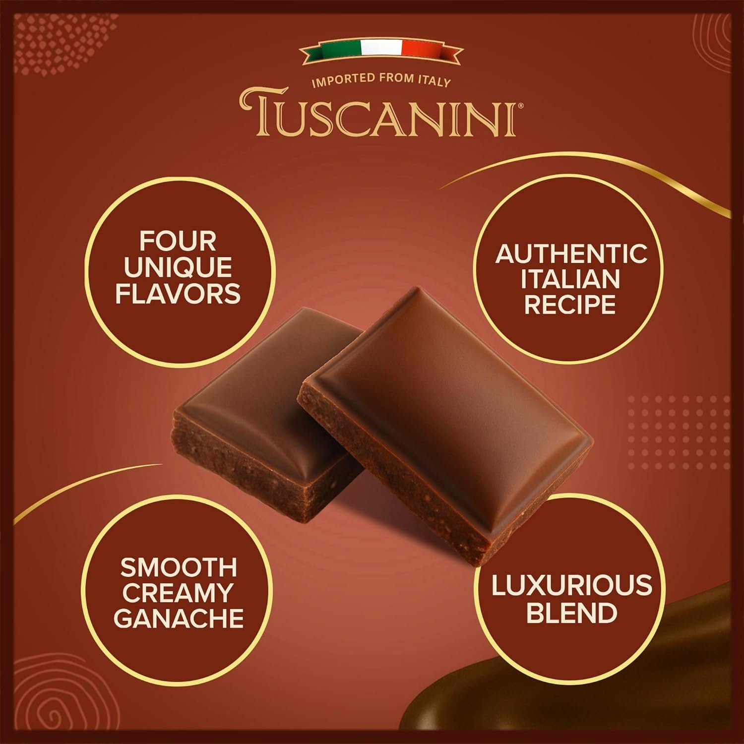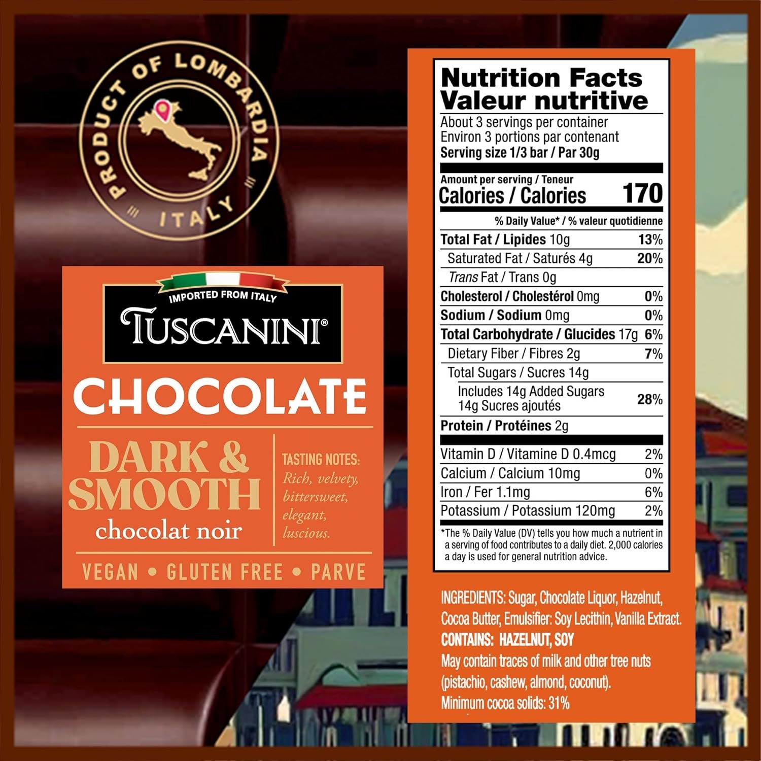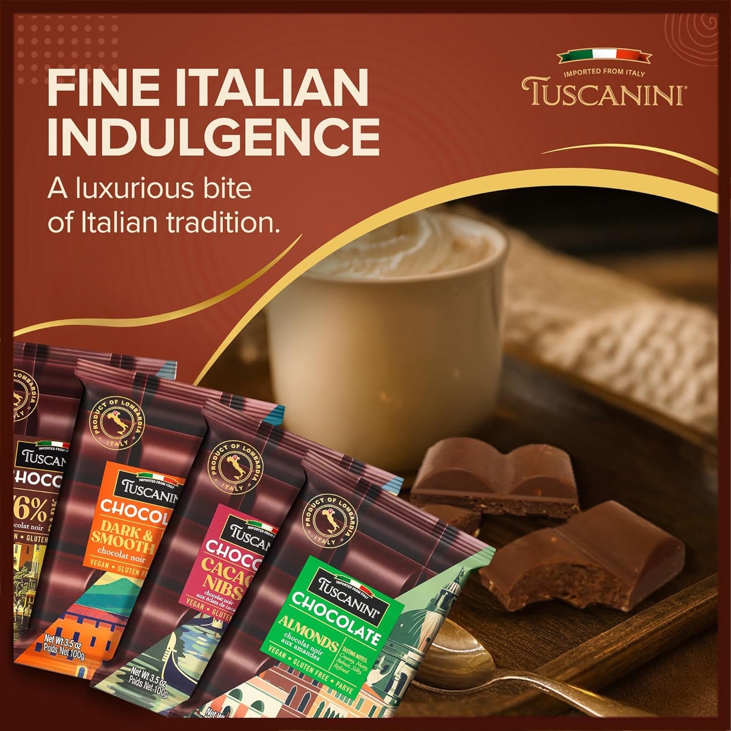Indulge in the authentic flavors of Italy with the Tuscanini Dark Chocolate Variety Pack. Crafted near Lake Como in Lombardia, this set includes four gourmet bars (3.5 oz each), each offering a unique tasting experience: Dark & Smooth – Velvety, balanced, and indulgent. Almond Dark Chocolate – A rich blend with 12% almonds and hazelnuts for nutty crunch. Cacao Nibs – Bold, complex chocolate with crunchy cacao nibs for texture. 76% Extra Dark – Deep, refined, and bittersweet with 76% cocoa solids. Each bar is vegan, gluten free, and Parve, made from premium ingredients without artificial flavors or colors. Elegant Italian packaging makes this set perfect for gifting, sharing, or savoring as a personal indulgence. Bring home the artistry of Italian chocolate with Tuscanini—a gourmet experience in every bite.