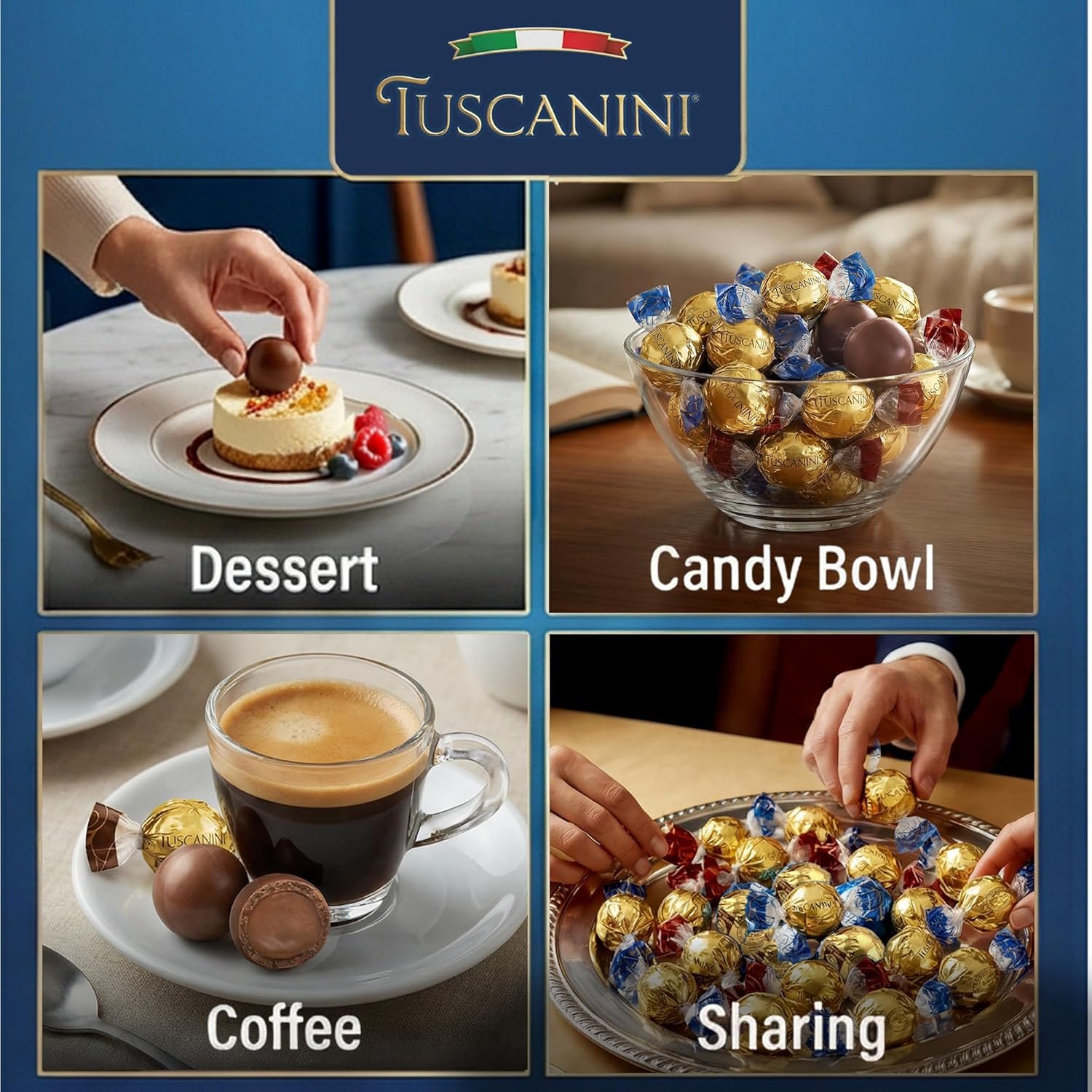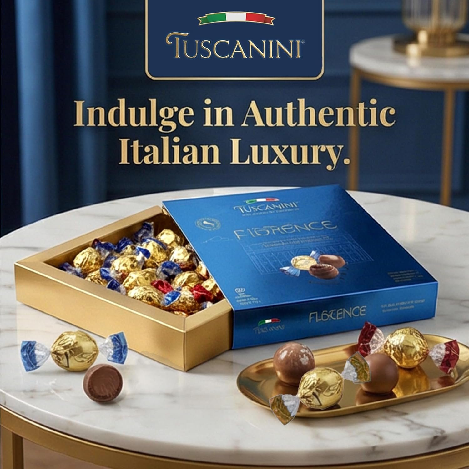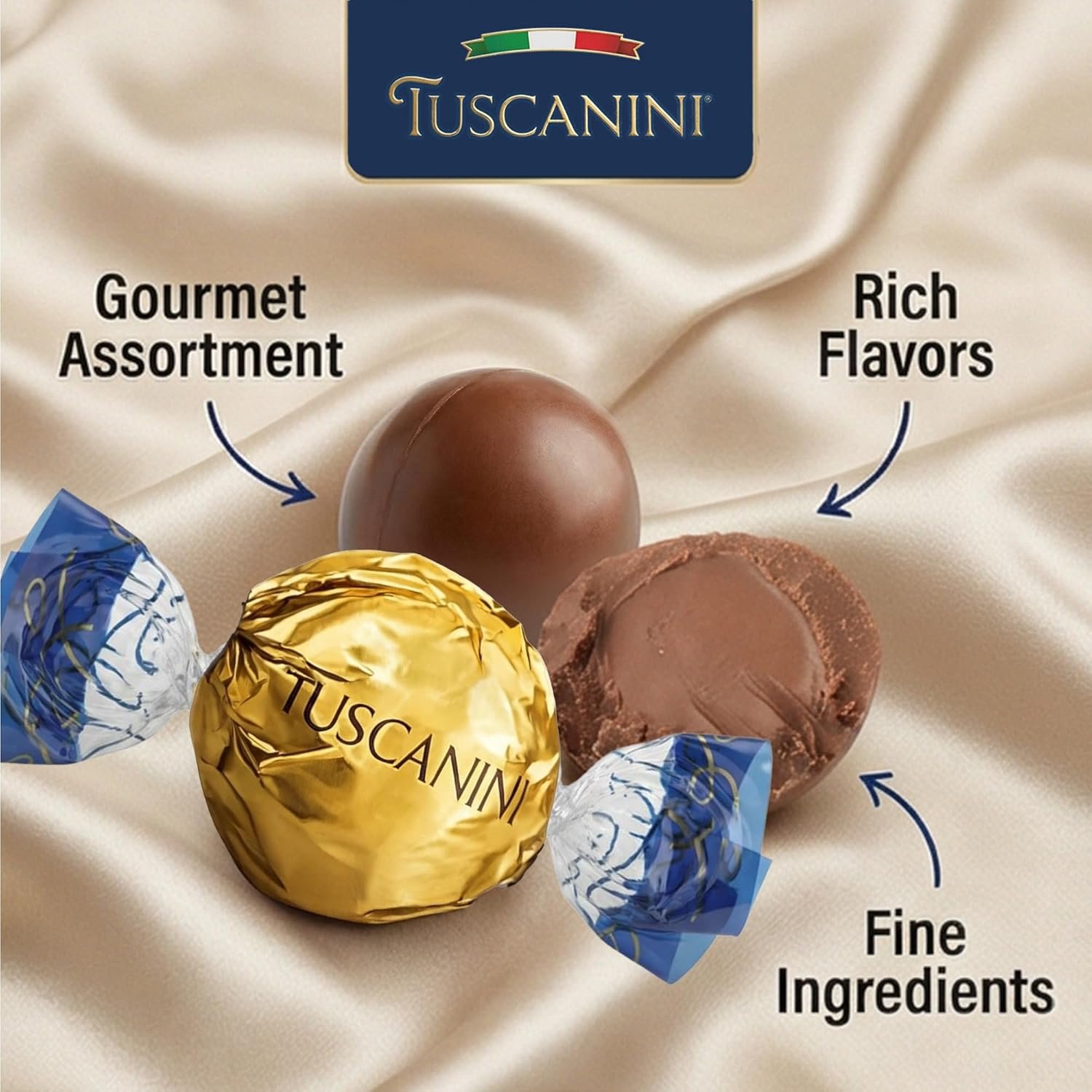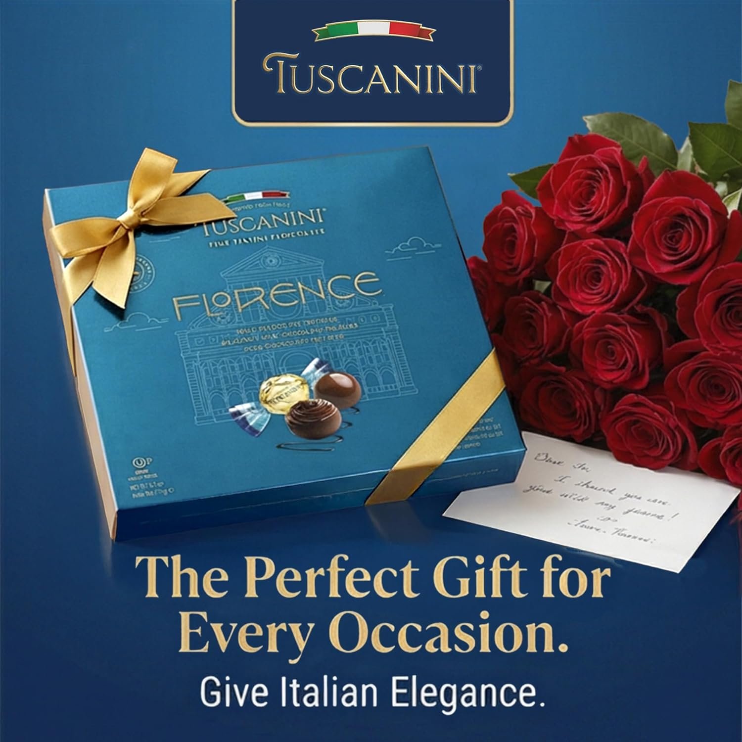 Elevate your gifting or personal indulgence with the Tuscanini Florence Chocolate Truffles. This exquisite assortment is Imported from Italy, capturing the essence of fine European confectionery craftsmanship. Inside the stunning blue gift box, you will find three distinct, decadent truffle flavors: Classic Milk Chocolate Rich Dark Chocolate Smooth Hazelnut Milk Chocolate Whether you are looking for a sophisticated thank you gift, a luxurious treat for a holiday party, or simply a moment of personal indulgence, the Tuscanini Florence Truffles deliver authentic, high-end quality in every individually wrapped piece.