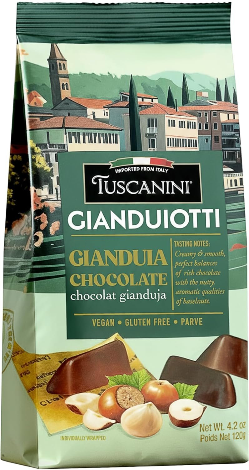 Discover the timeless indulgence of Tuscanini Gianduiotti Chocolate—a luxurious Italian blend of smooth chocolate and roasted hazelnuts. Known as gianduia, this traditional confection has been enjoyed in Italy for generations for its velvety texture and perfectly balanced flavor. Tuscanini’s gianduiotti are individually wrapped to preserve freshness, making them perfect for savoring one at a time, sharing with friends, or adding to a gourmet gift basket. Imported from Italy, each piece embodies the rich heritage of Italian chocolate making.