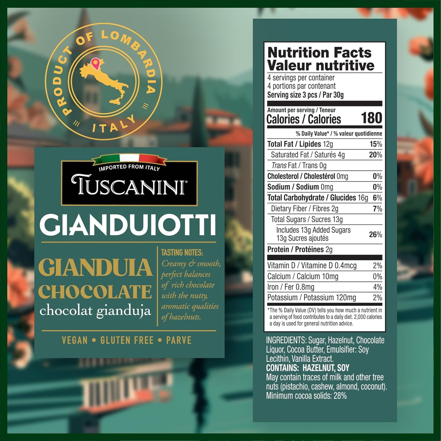 Classic Gianduia Flavor– A creamy balance of sweet cocoa and nutty roasted hazelnuts delivers the classic gianduia taste loved for centuries.
