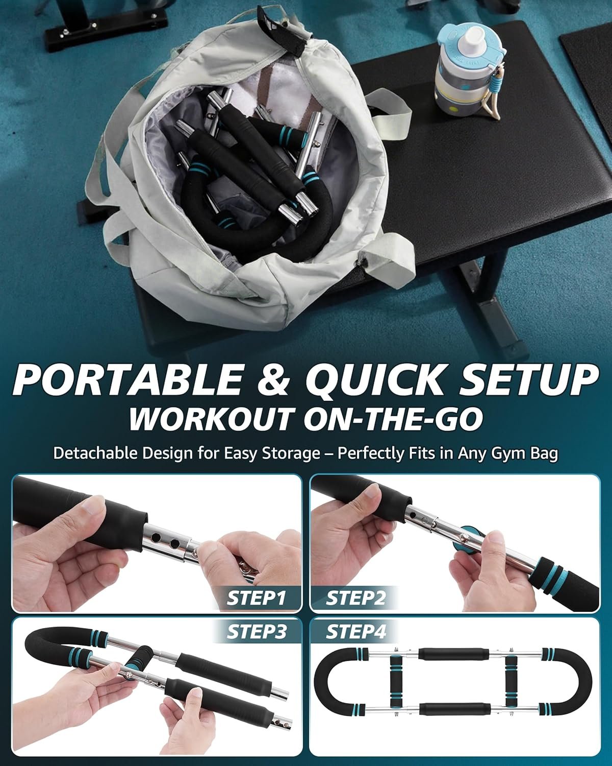Portable & Travel-Ready: Compact and detachable—fits easily in your gym bag or backpack. No gym? No problem. Work out anytime, anywhere: office, park, or hotel.