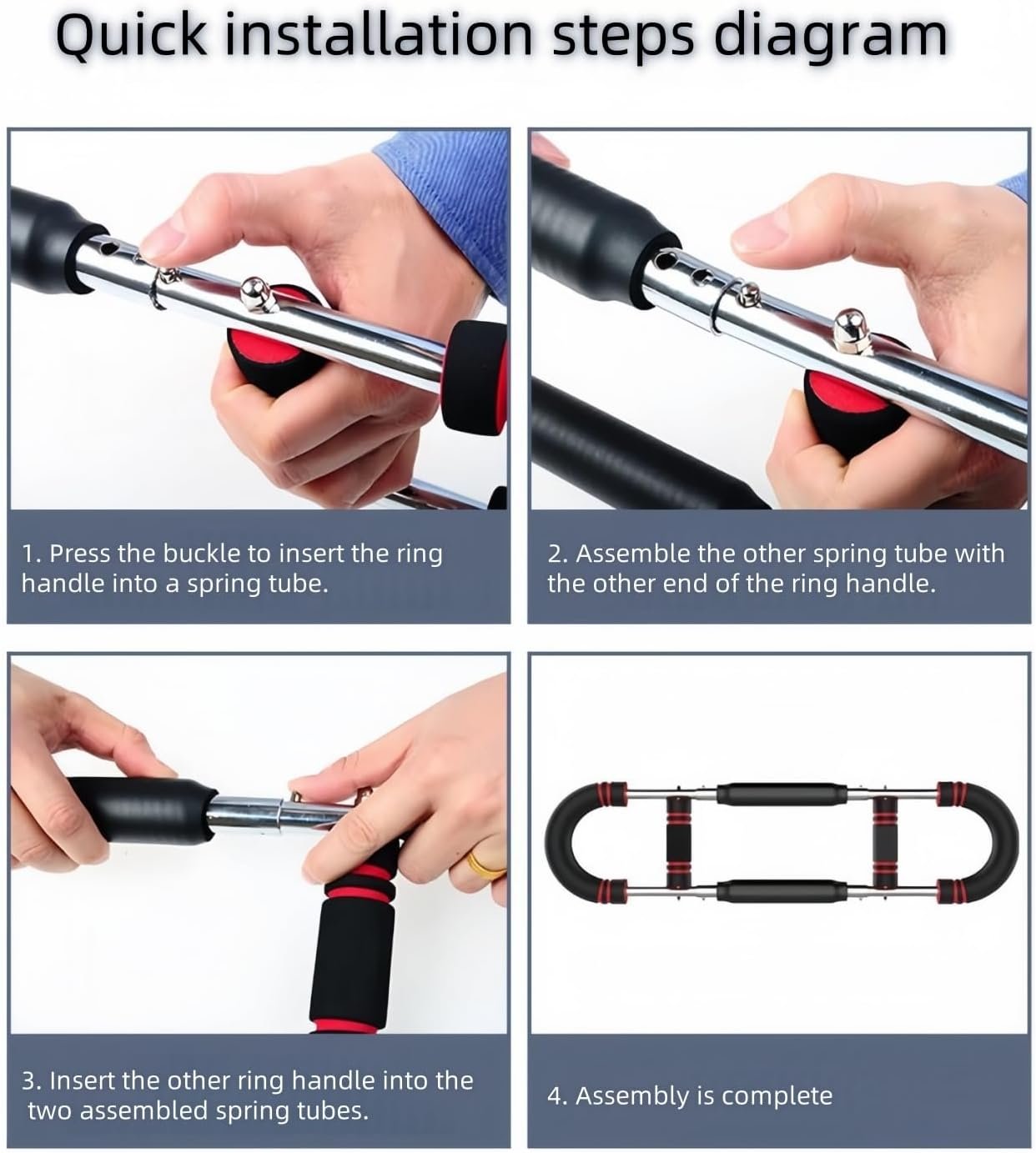 Unique Full-Body Fitness Equipment: The Twister Arm Exerciser features a U-shaped spring rod that acts as your personal trainer, providing training guide charts to help you achieve exceptional chest workouts. This strength rod precisely targets multiple muscle groups including the chest, arms, biceps, abs, shoulders, back, and thighs, making your workout efficient and comprehensive.
