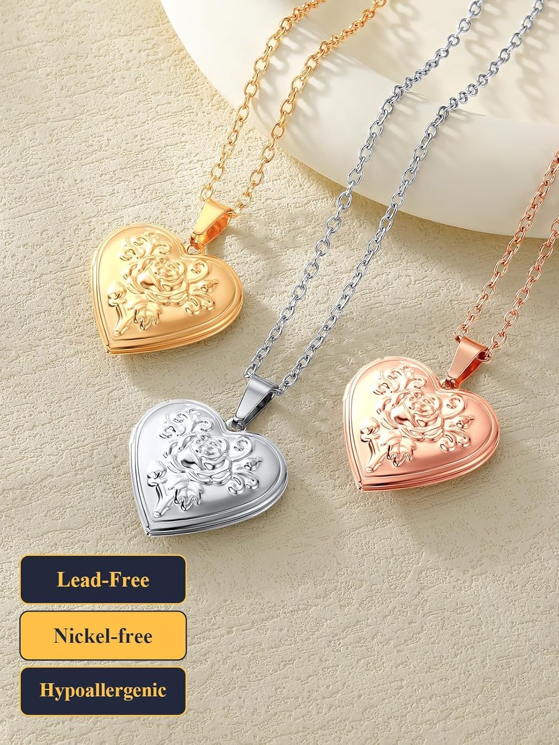 The video showcases the product in use.The video guides you through product setup.The video compares multiple products.The video shows the product being unpacked. rose locket for women Merchant Video