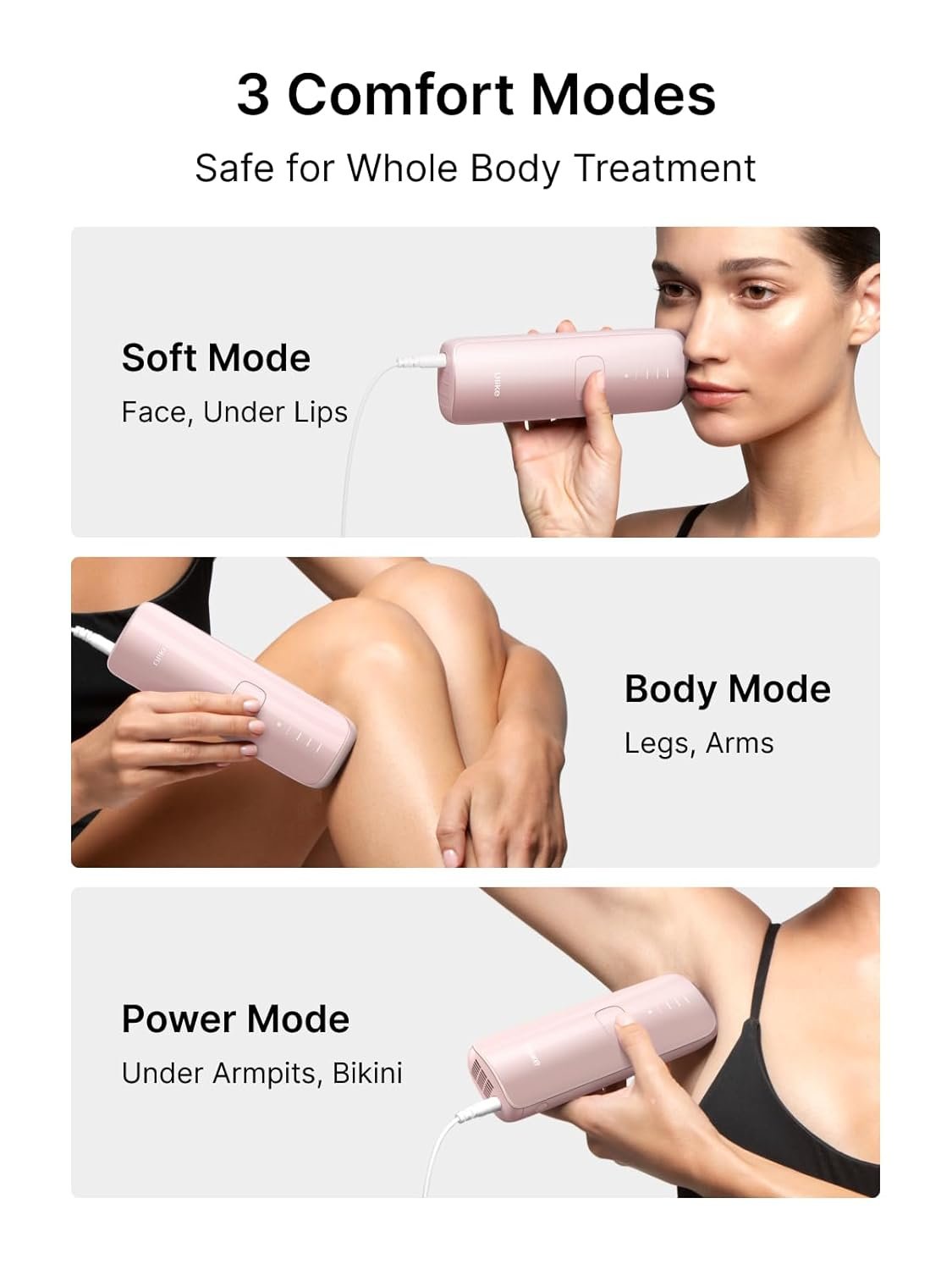 Head-to-Toe Hair Removal: This laser hair removal device can go where hair you unwanted. From legs and arms to the bikini area, it’s safe, nearly painless, and effective to use everywhere. The Auto-Glide Mode with fast flash makes full body treatments at home super quick.