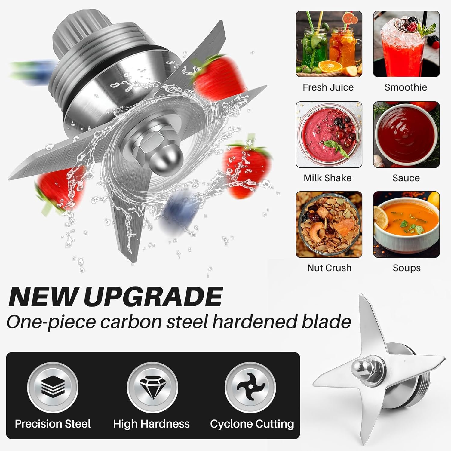 Wide application: The 64oz blender pitcher can blend a variety of ingredients, including frozen fruits, leafy vegetables, raw nuts, ice cubes and dried foods; It effortlessly pulverized everything we threw at it; It can also crush ice that is still good enough for use in drinks, like cocktails and slushies; From crafting fresh juices to whipping up comforting soups in minutes, our blenders seamlessly integrate into your daily routine, making mealtime prep easy and convenient