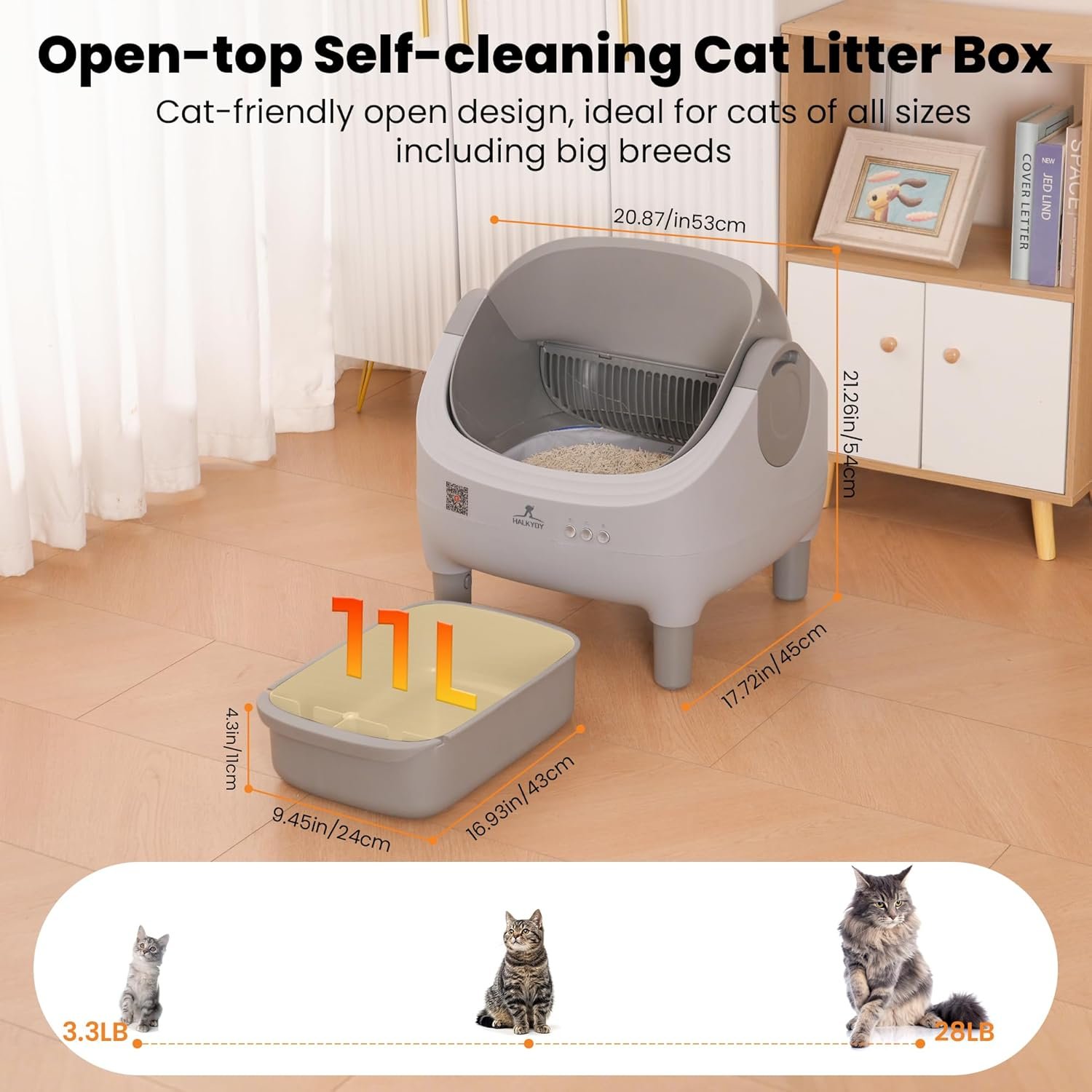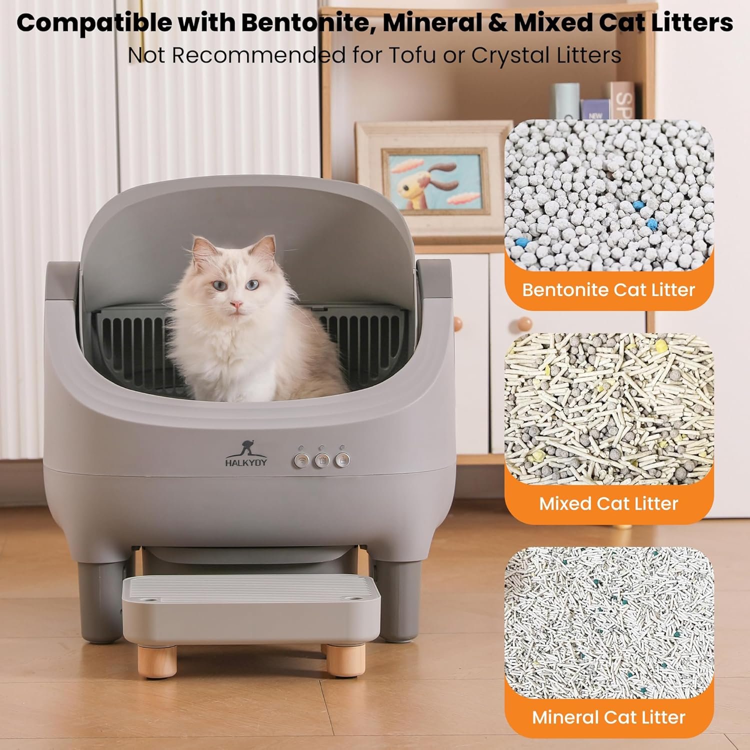 2025 LATEST UPGRADED SELF CLEANING LITTER BOX: Come with Raised Step for Cat Get In and Out Of Litter Box and Trap Litter, Open Top Large Capacity for Multiple Cats, Smart App Control + Monitor, Odor Control & Health Monitoring & Safety Protection & Quiet Operation & Long-lasting Durability